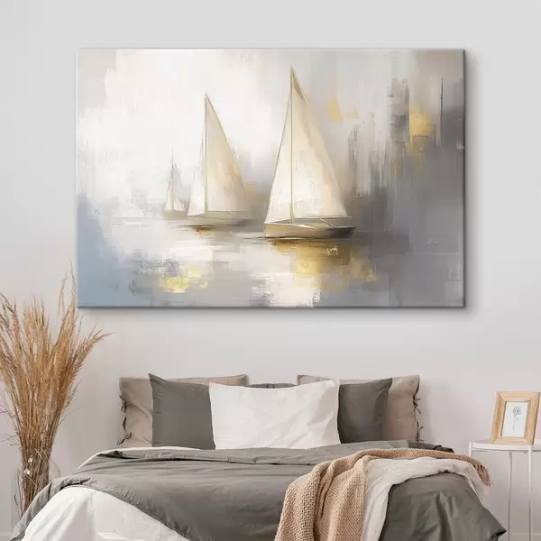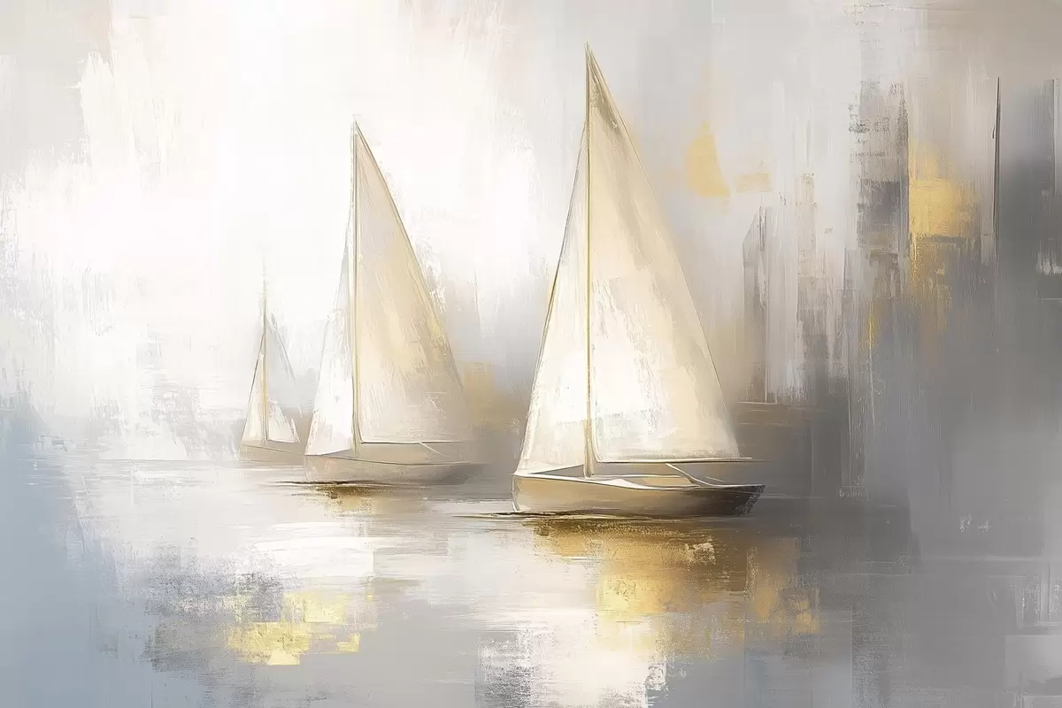 murales de pared Barcos en el mar, abstracción, estilo óleo, colores beige s43505