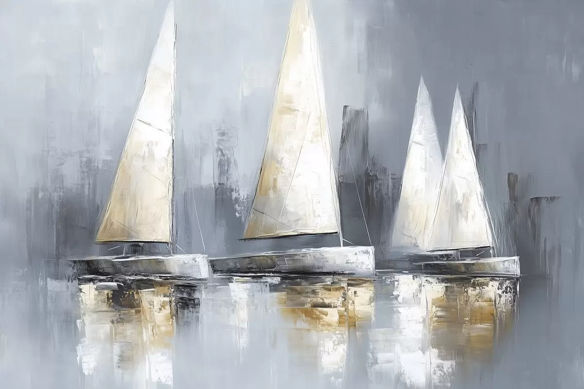murales de pared Veleros con reflejos en el agua, dibujo al óleo, colores grises s43506