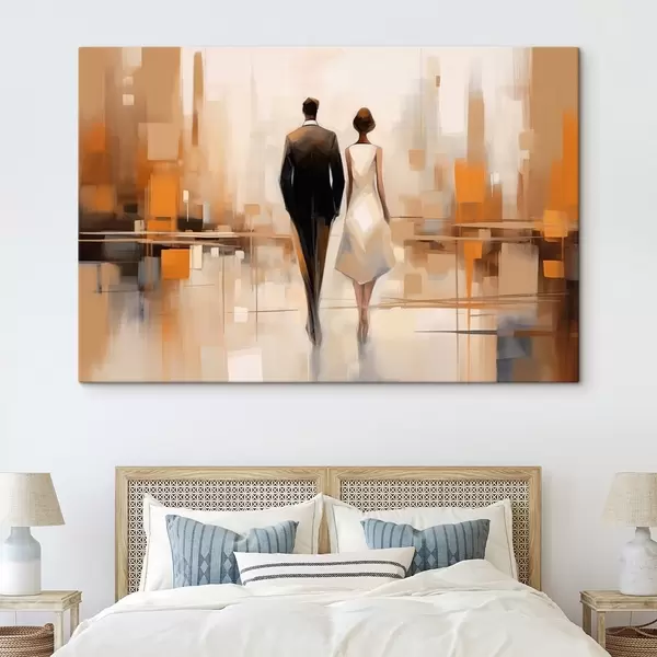 Cuadros Abstracción con siluetas de ciudades y dos figuras Nr s43516