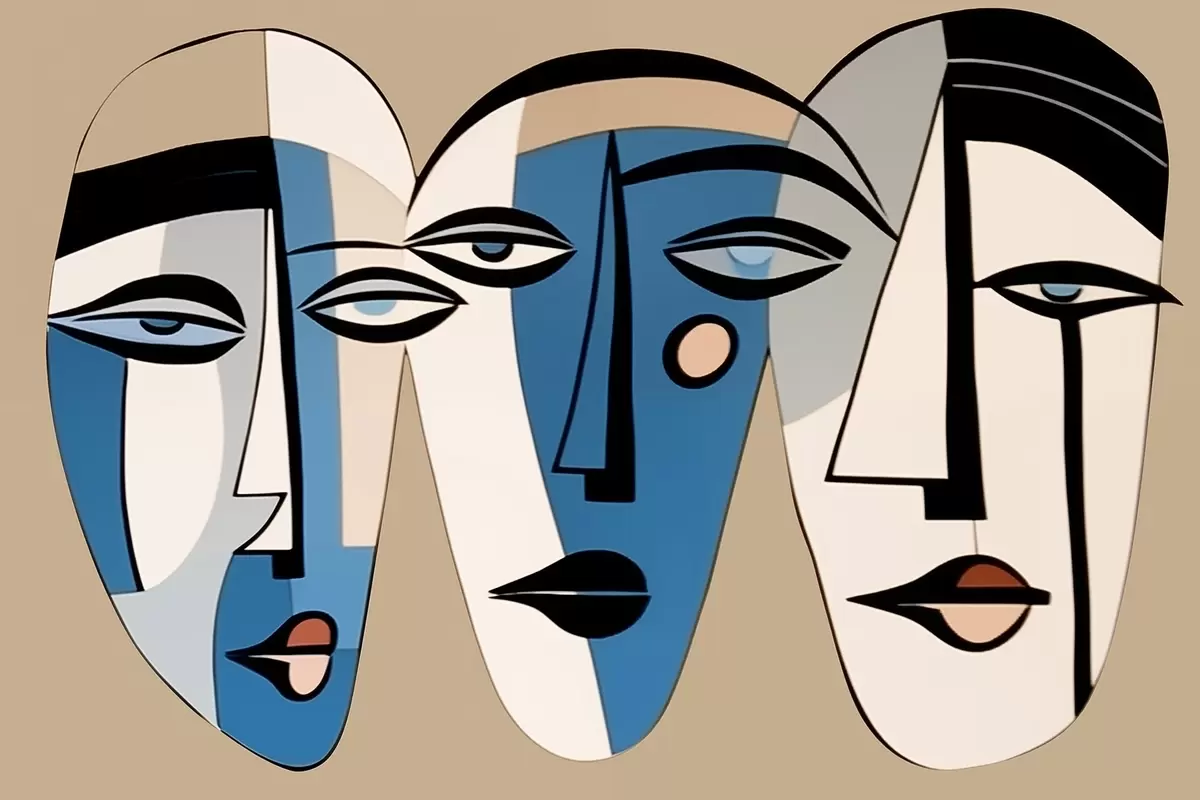 murales de pared Retrato abstracto de un gato en estilo geométrico s43526
