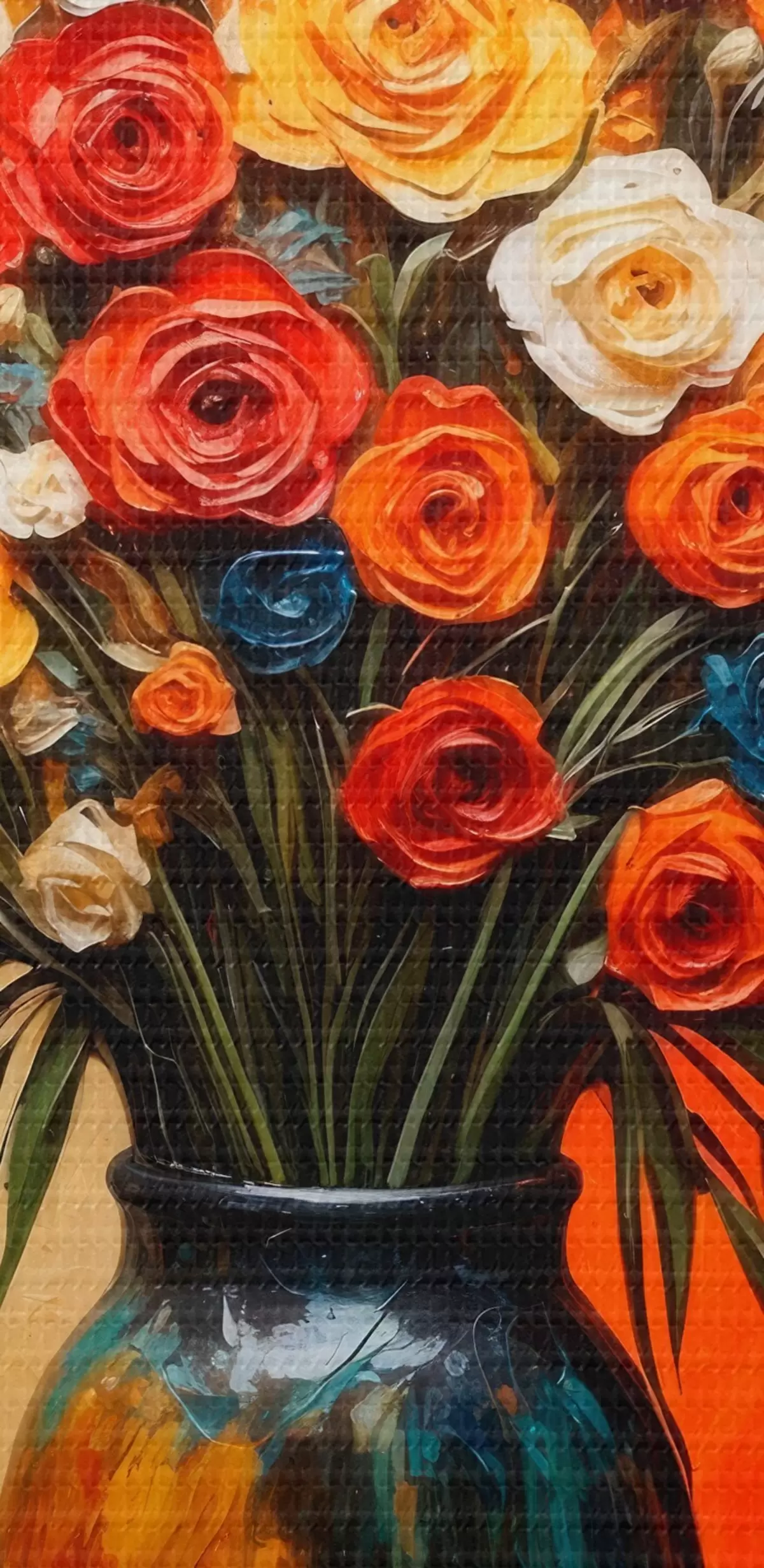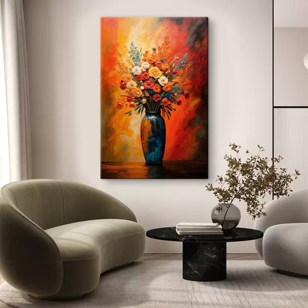 Cuadros Diferentes flores en jarrón sobre fondo rojo-amarillo Nr s43867