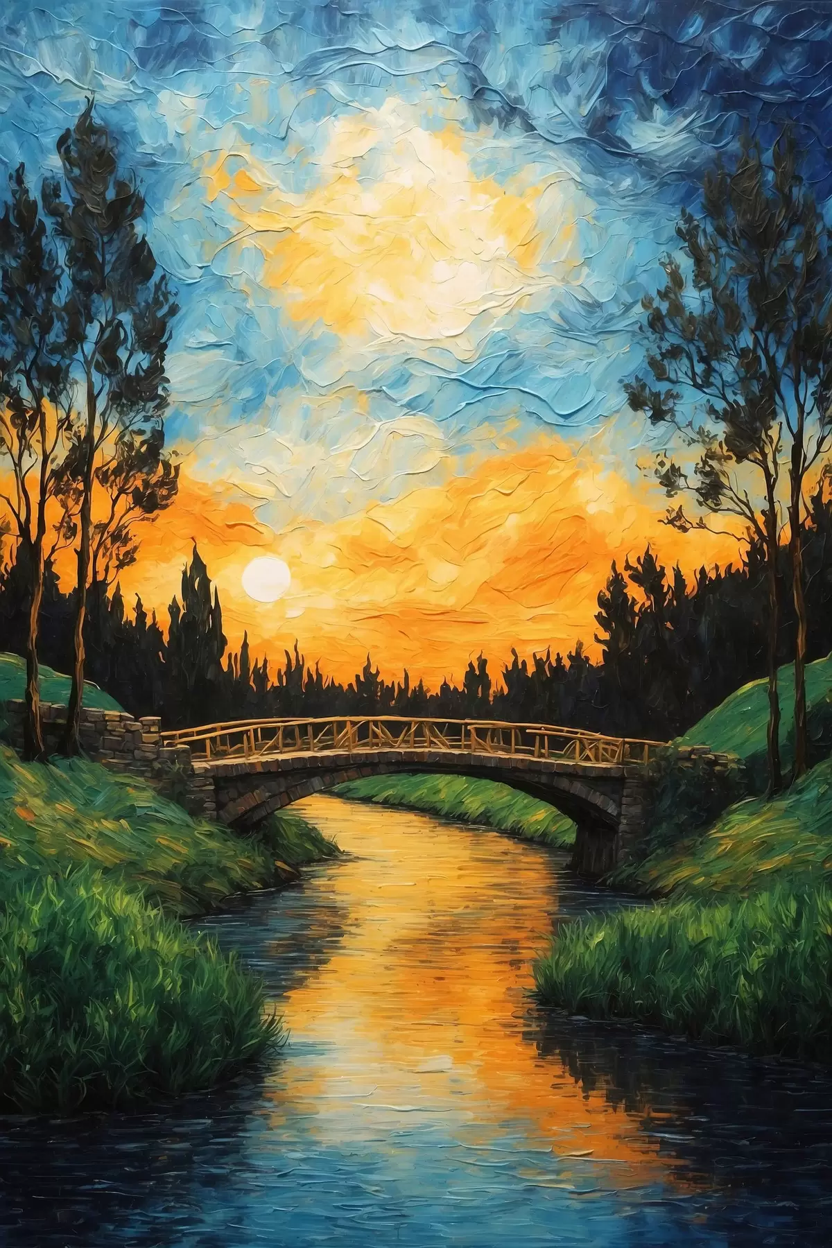 Cuadros Puente en el bosque en estilo de pintura acrílica Nr s43868