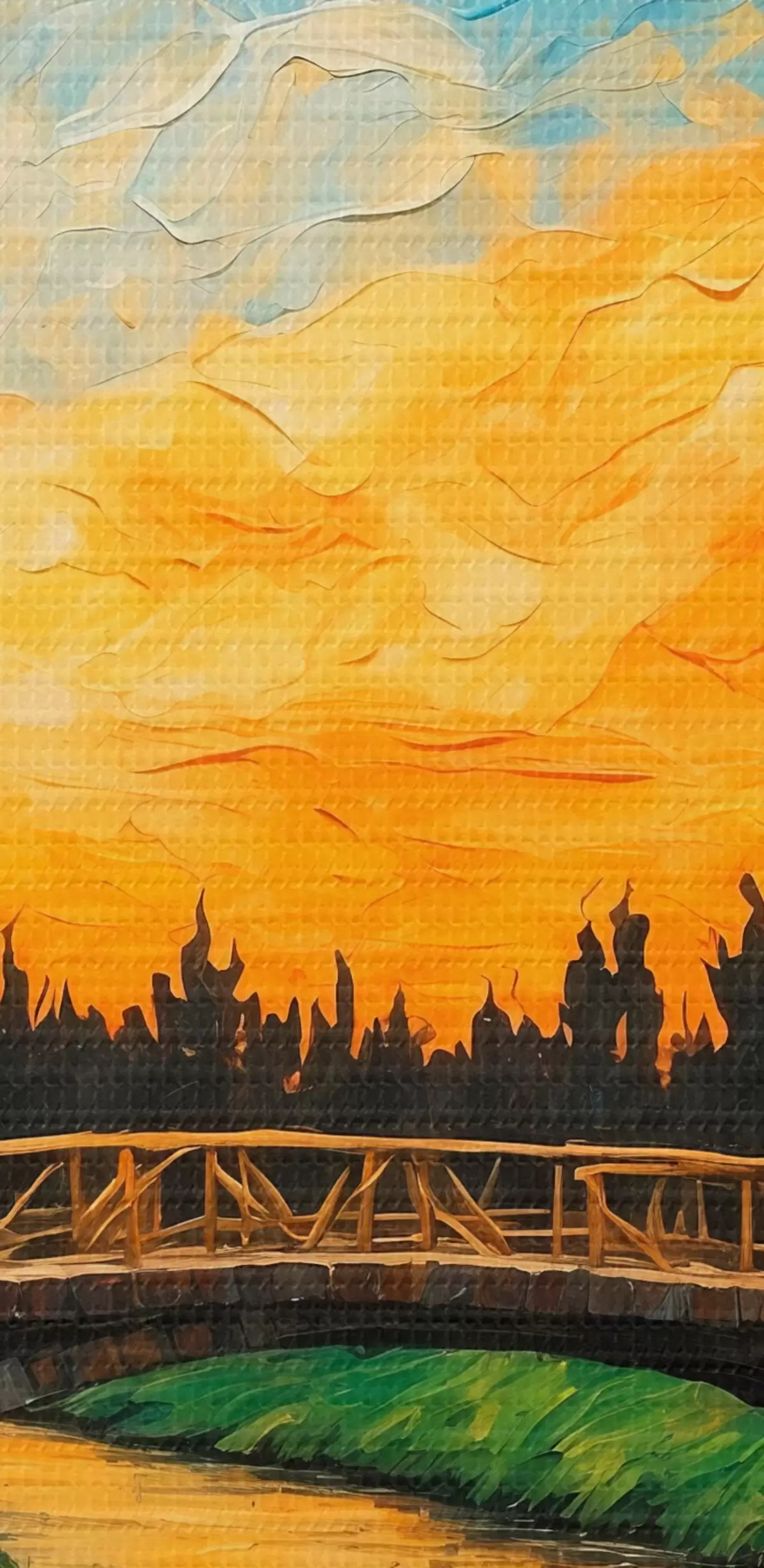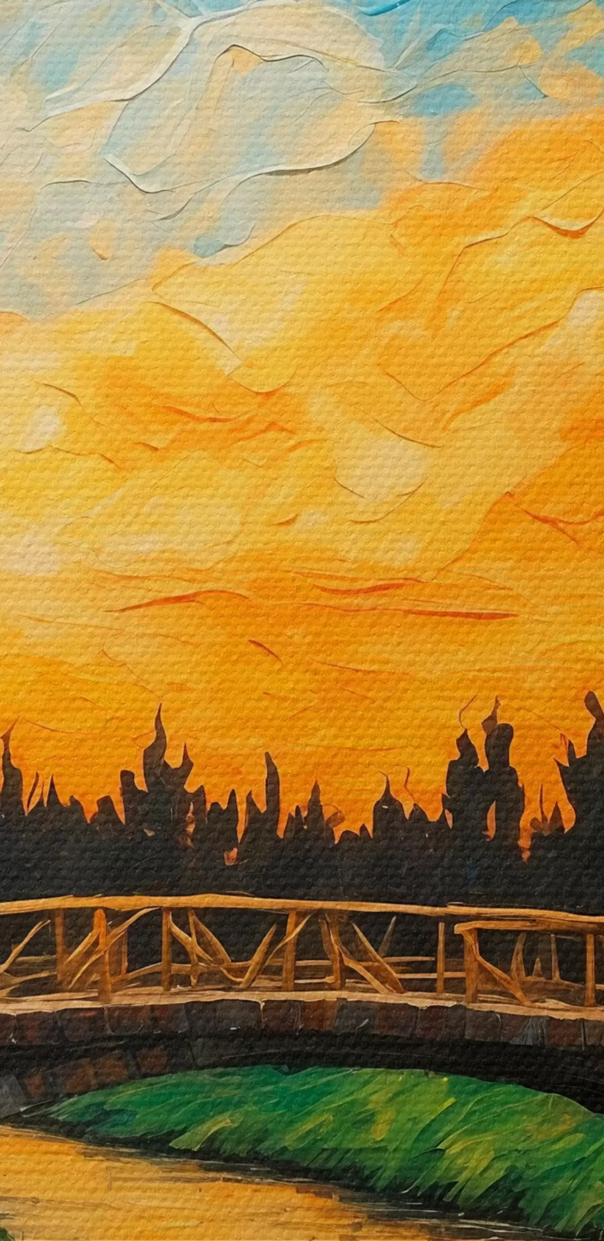 murales de pared Puente en el bosque en estilo de pintura acrílica s43868