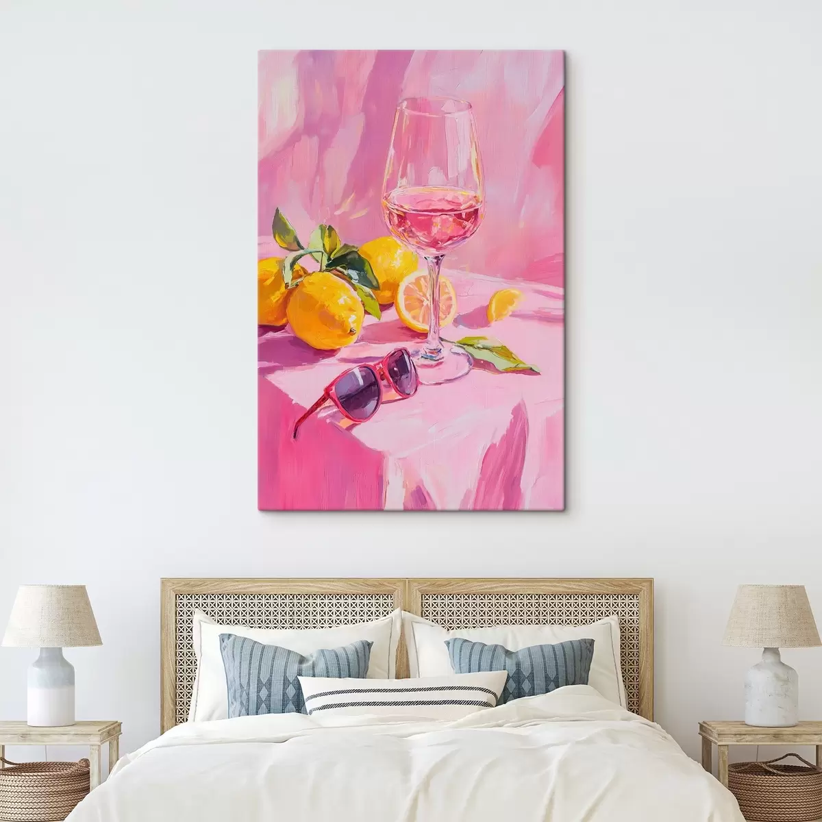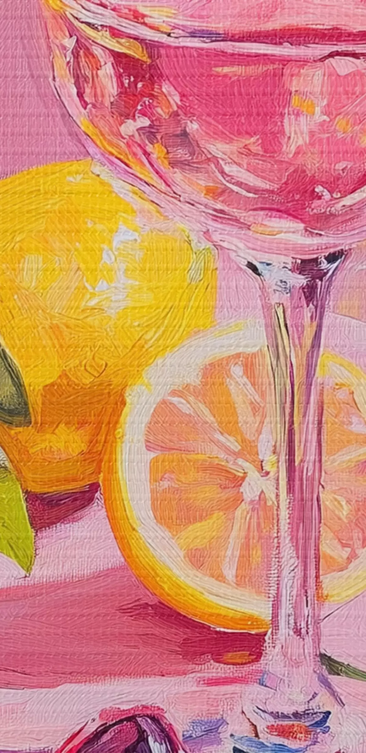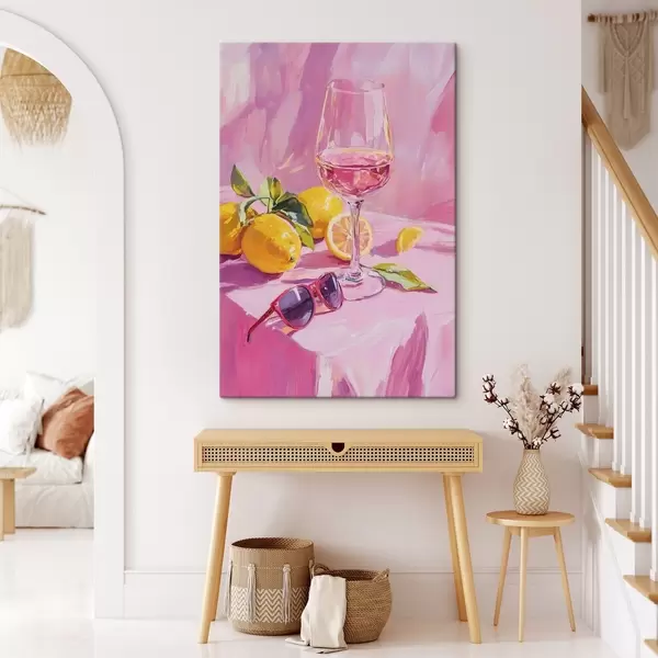murales de pared Copa de vino con limones, gafas de sol, abstracción, dibujo al óleo, colores rosas s43883