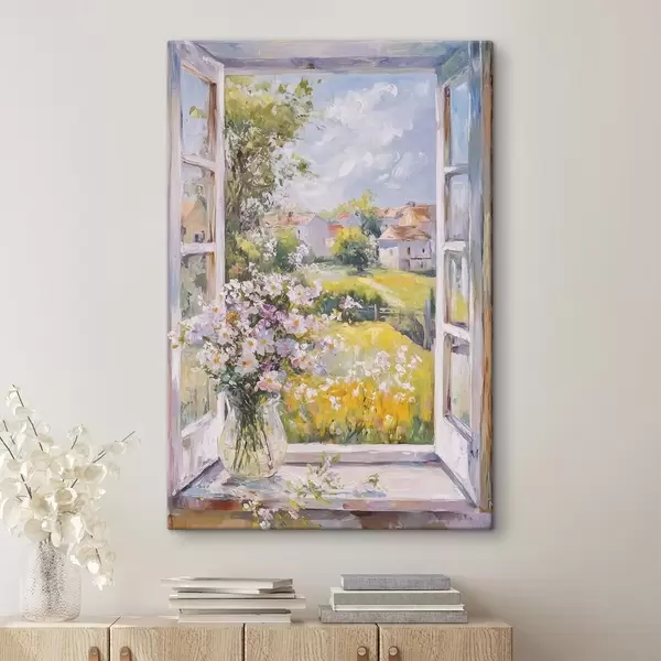Cuadros Verano en el pueblo, rústico, dibujo al óleo, flores en jarrón Nr s43889