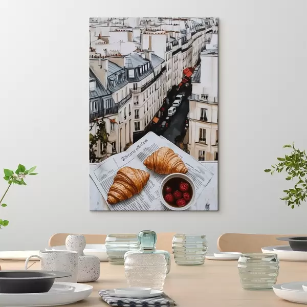 Cuadros Café de la mañana con croissants, calle de la ciudad, arquitectónico, estilo óleo Nr s43891