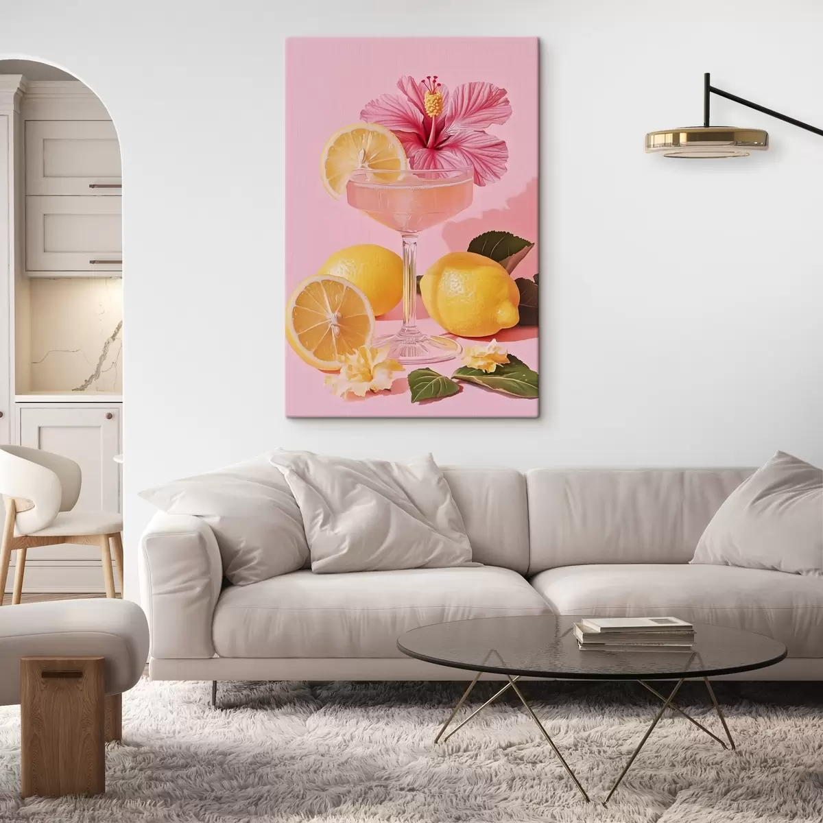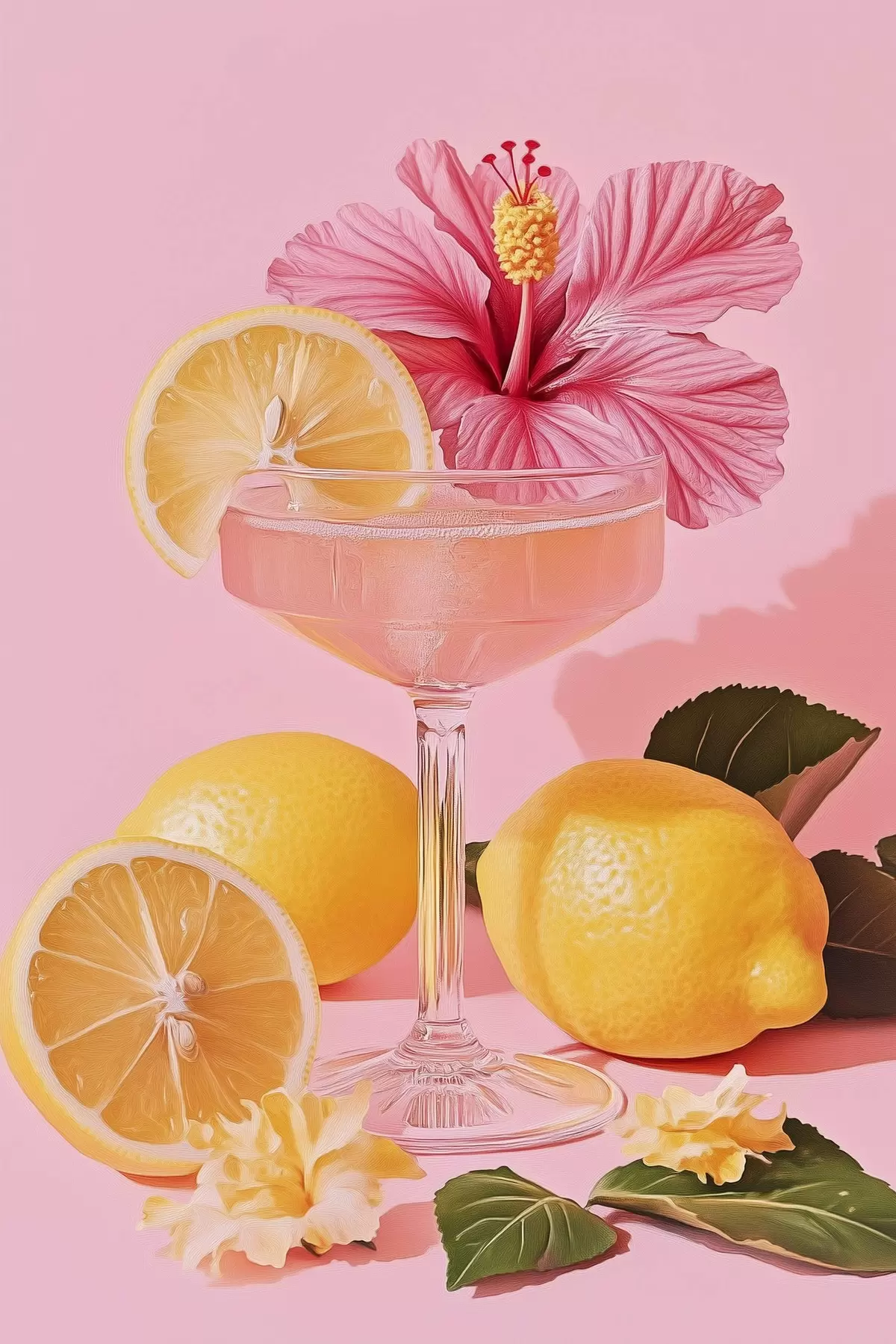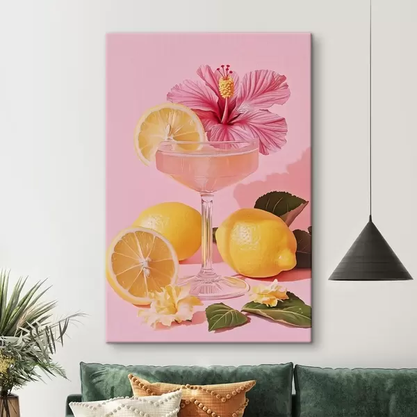 Cuadros Cóctel rosa con flor de hibisco, limones, realismo Nr s43893