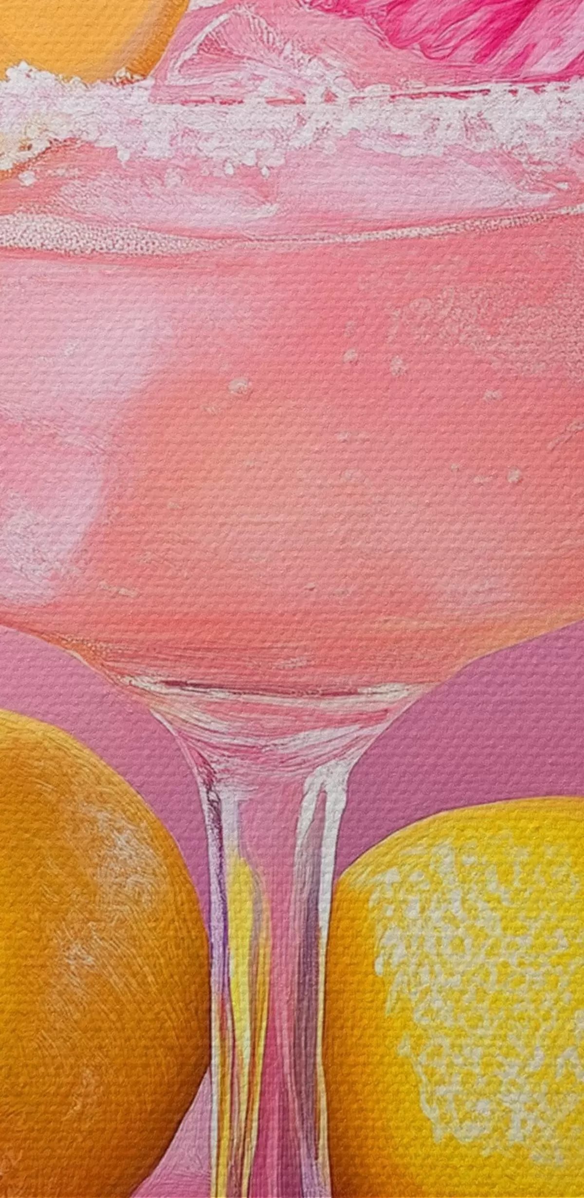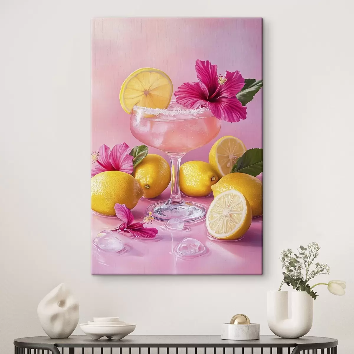 Cuadros Cóctel de verano con flores y limones, colores rosados, estilo acuarela Nr s43895