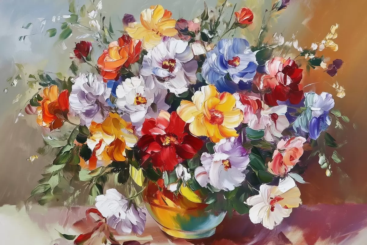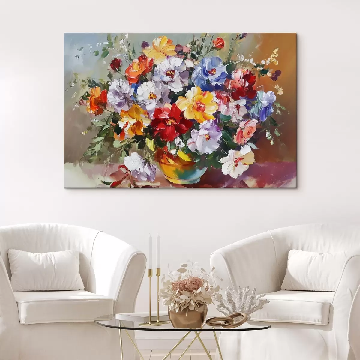 murales de pared Flores multicolores en un jarrón al óleo s43909