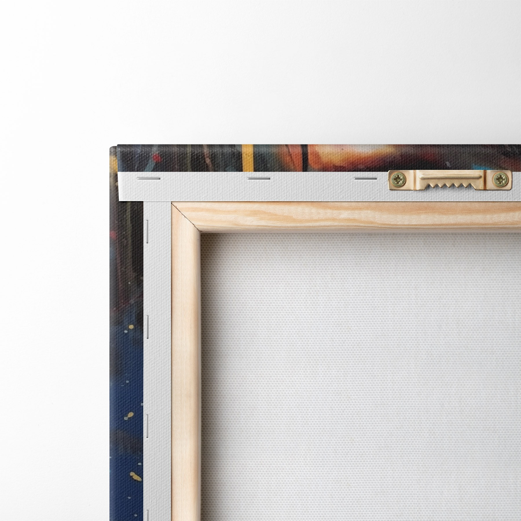 Vendemos cuadros en bastidor: se trata de un marco de madera sobre el que se extiende el lienzo. Este cuadro no necesita marco; puedes colgarlo directamente en la pared.