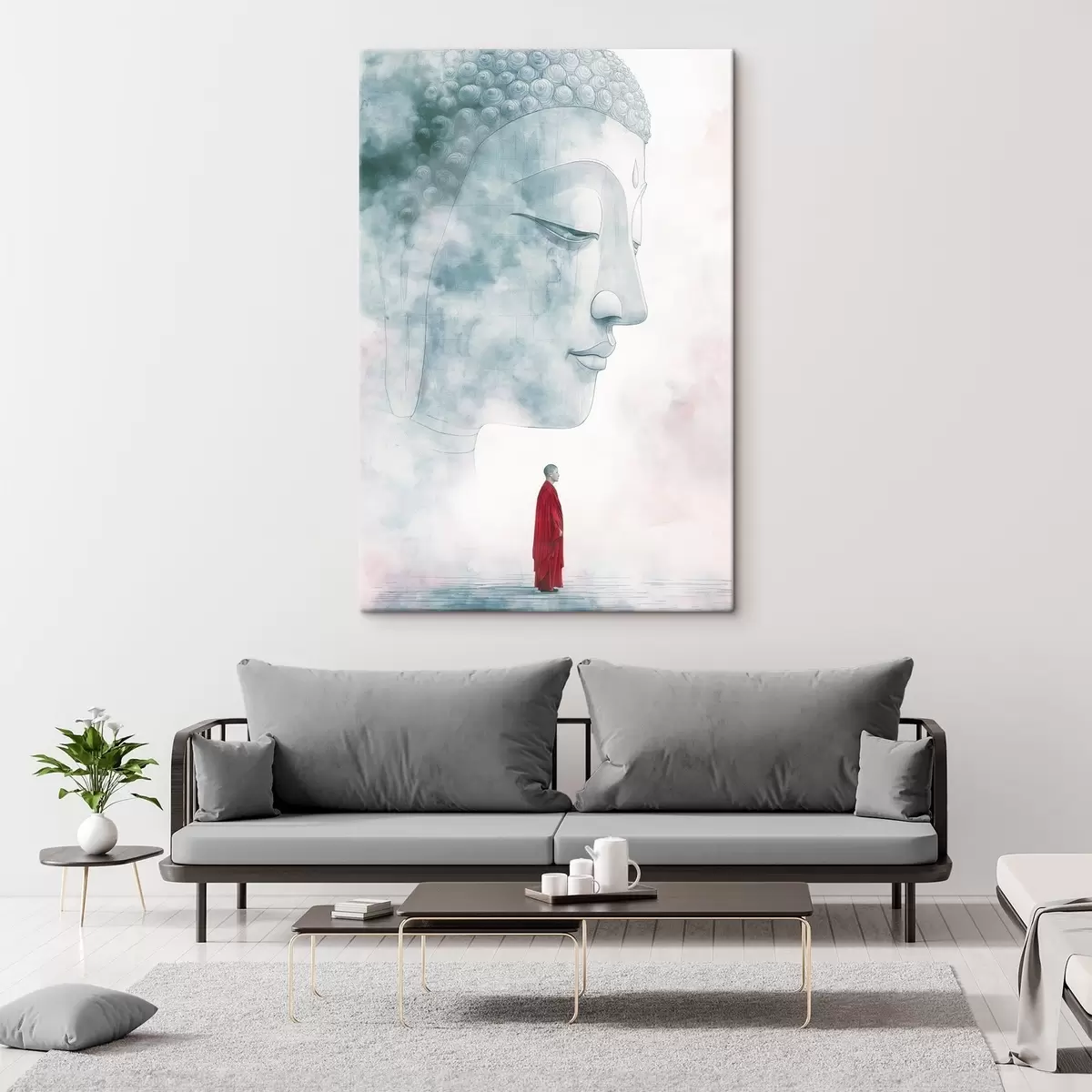 Cuadros Monje budista con túnica roja, silueta de Buda, estilo acuarela Nr s44006