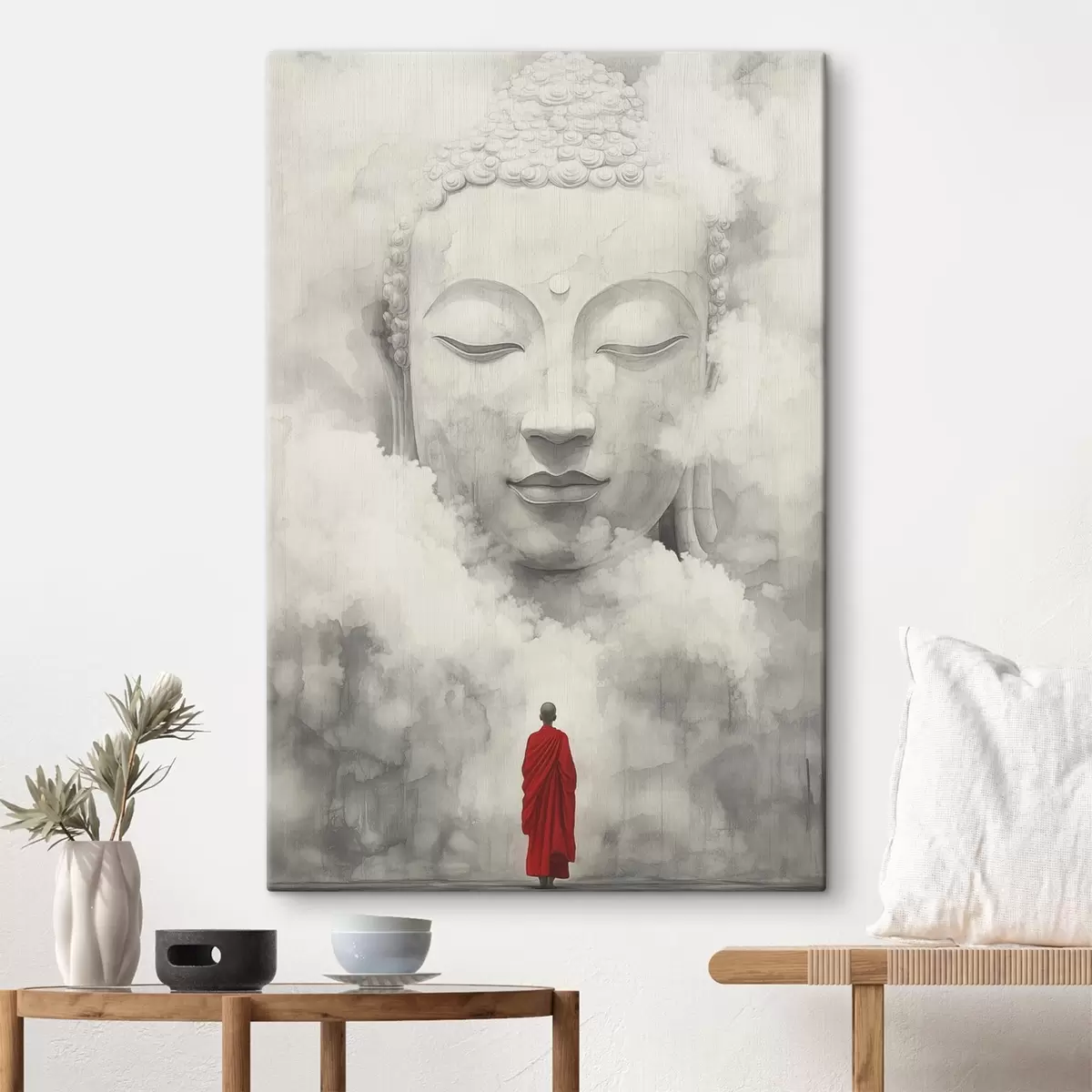 Cuadros Budismo, monje de la túnica roja, niebla, estilo acuarela Nr s44007