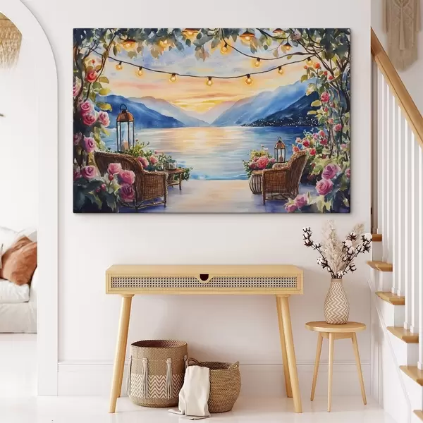Cuadros Hermosa puesta de sol en las montañas, lago, rosas, estilo boho Nr s44025