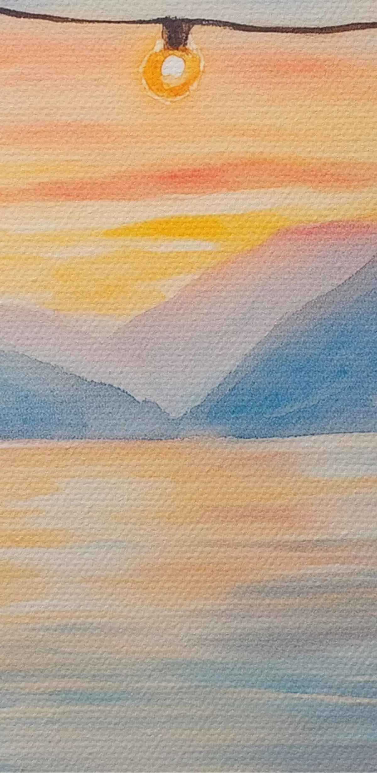 murales de pared Hermosa puesta de sol en las montañas, lago, rosas, estilo boho s44025