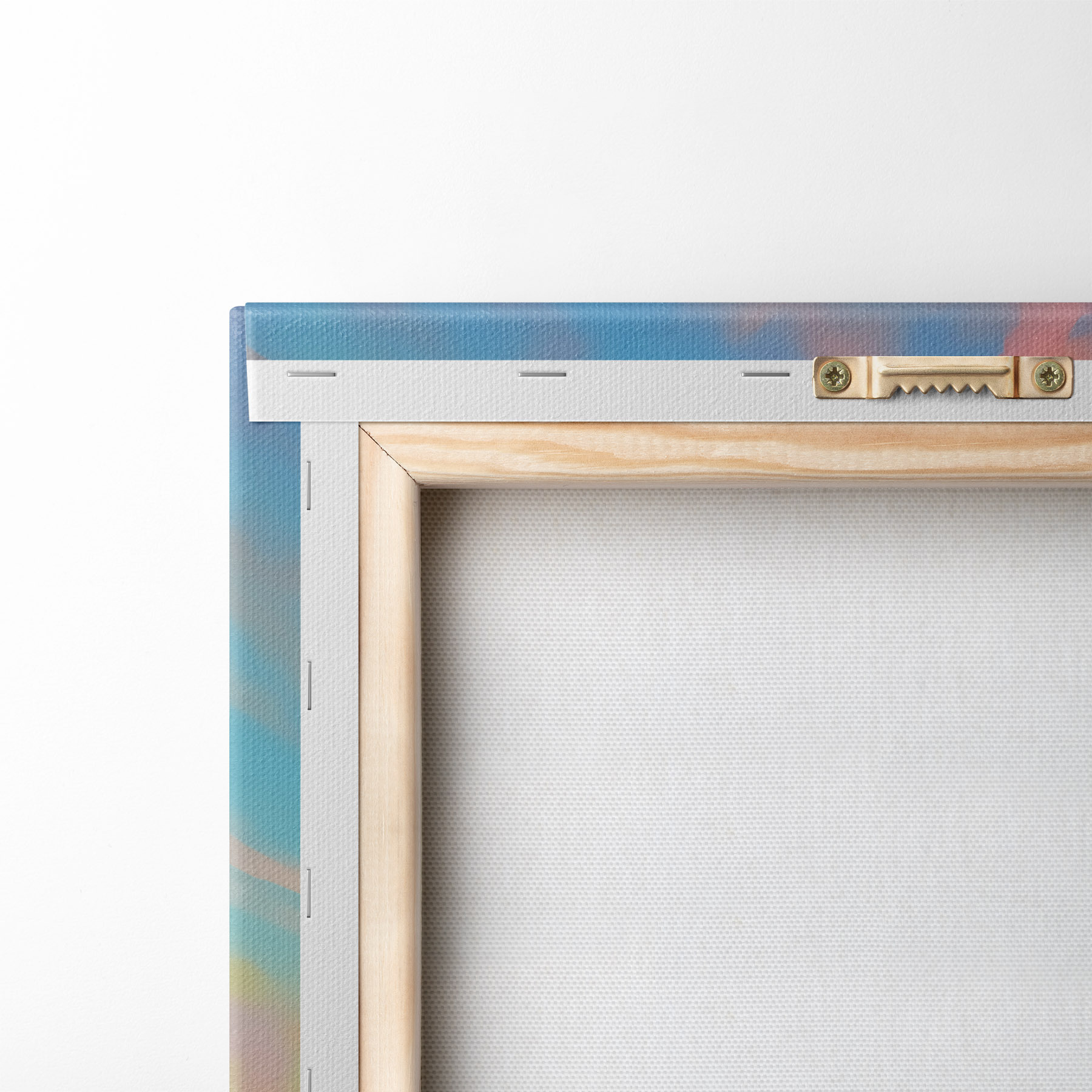 Vendemos cuadros en bastidor: se trata de un marco de madera sobre el que se extiende el lienzo. Este cuadro no necesita marco; puedes colgarlo directamente en la pared.