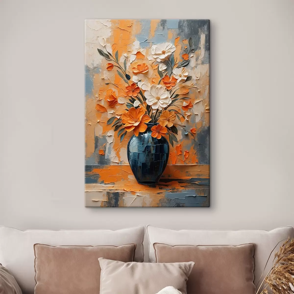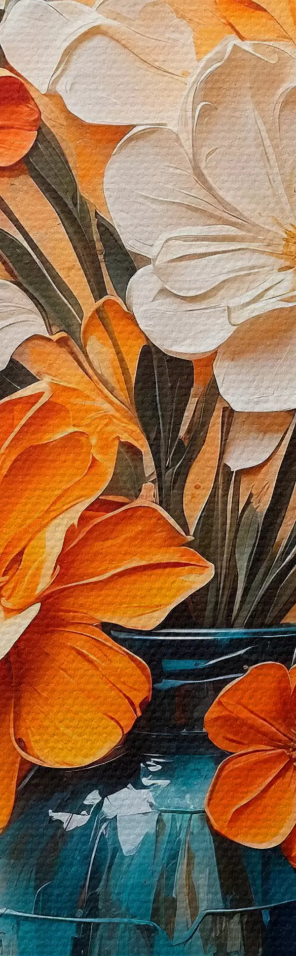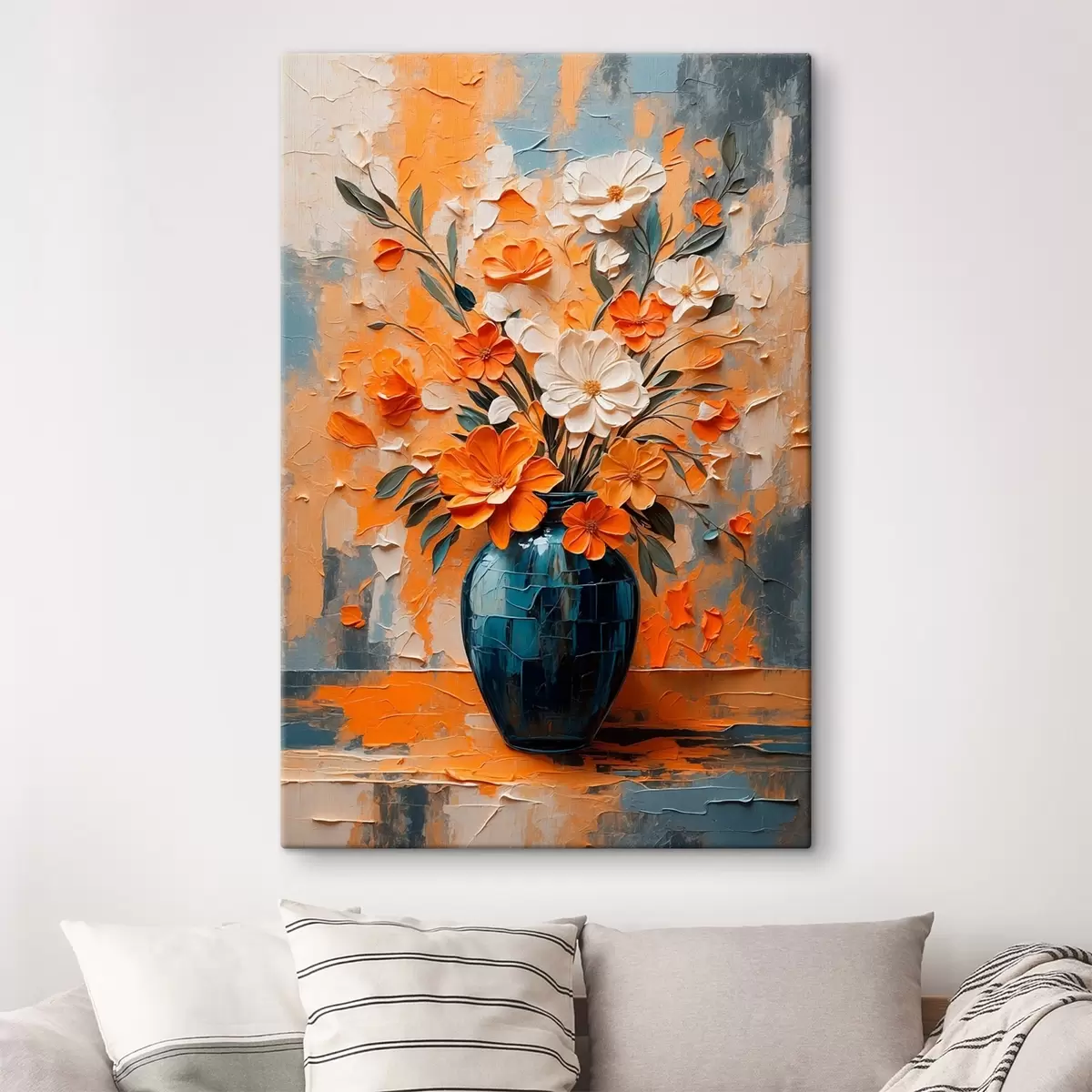 murales de pared Flores blancas y naranjas en jarrón al óleo s44059