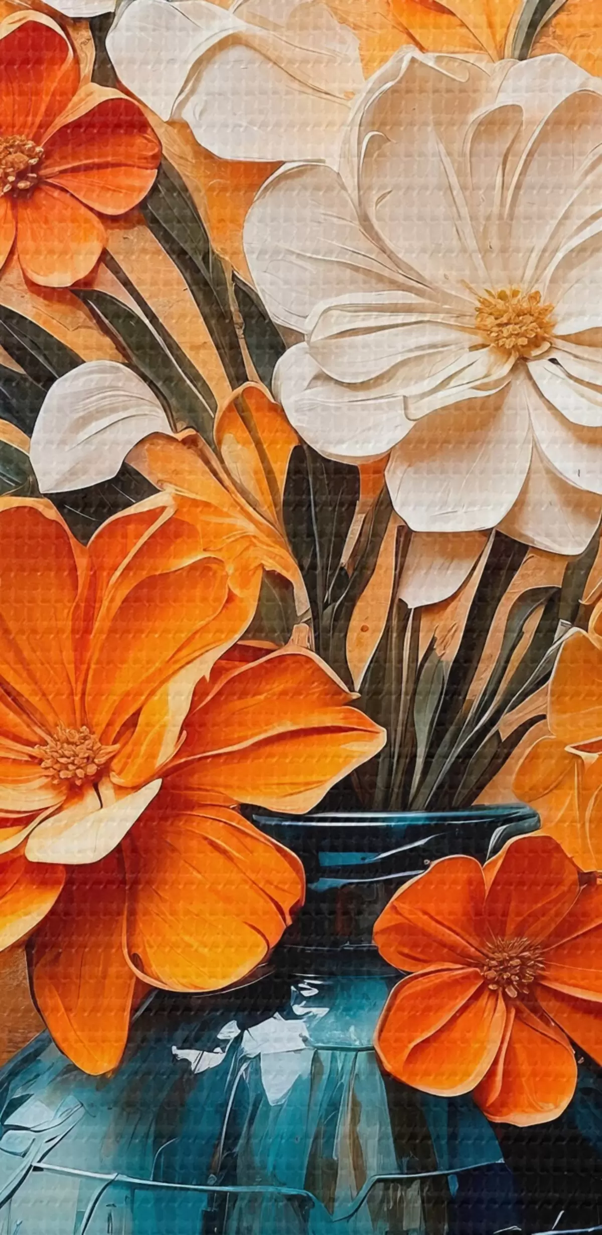 murales de pared Flores blancas y naranjas en jarrón al óleo s44059