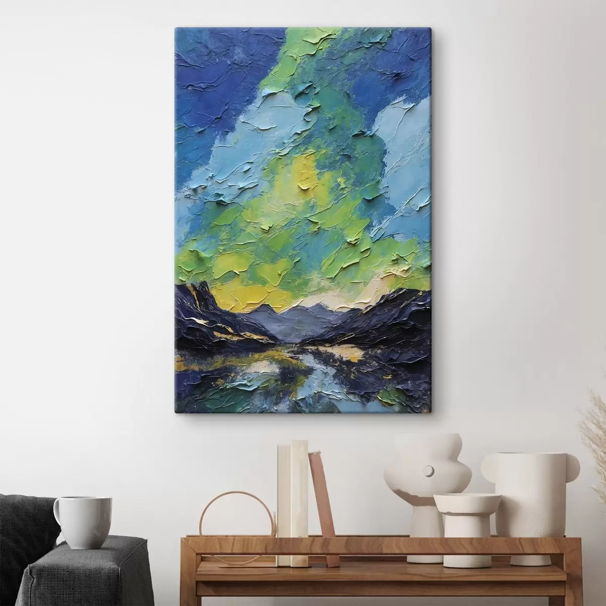 Vendemos cuadros en bastidor: se trata de un marco de madera sobre el que se extiende el lienzo. Este cuadro no necesita marco; puedes colgarlo directamente en la pared.