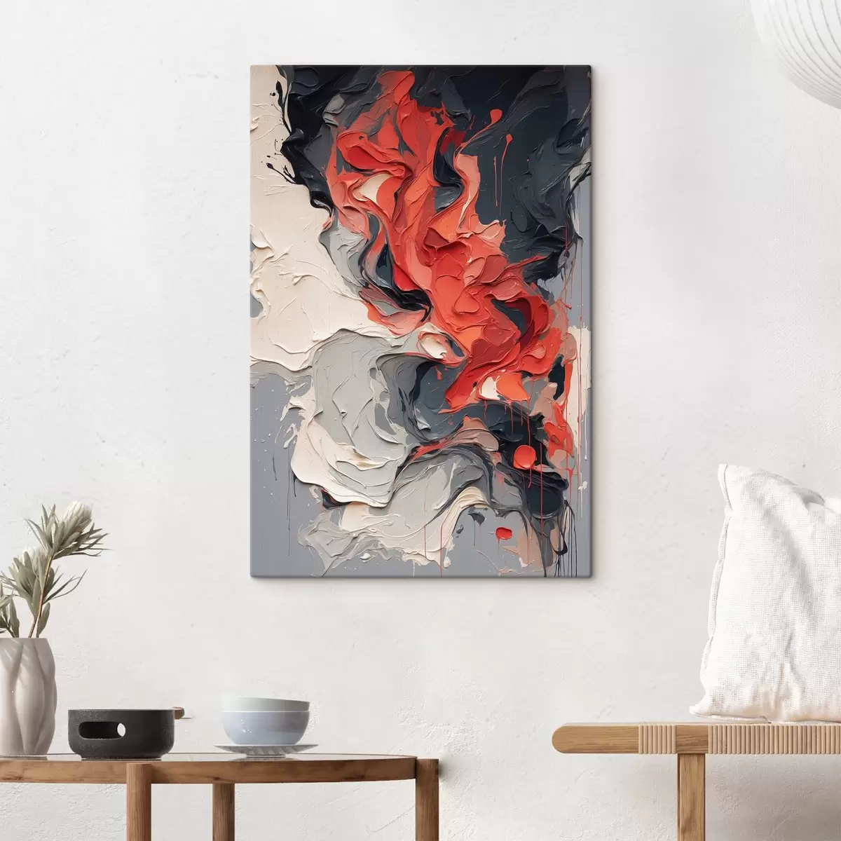 murales de pared Óleo abstracto en colores rojo, negro y gris s44079