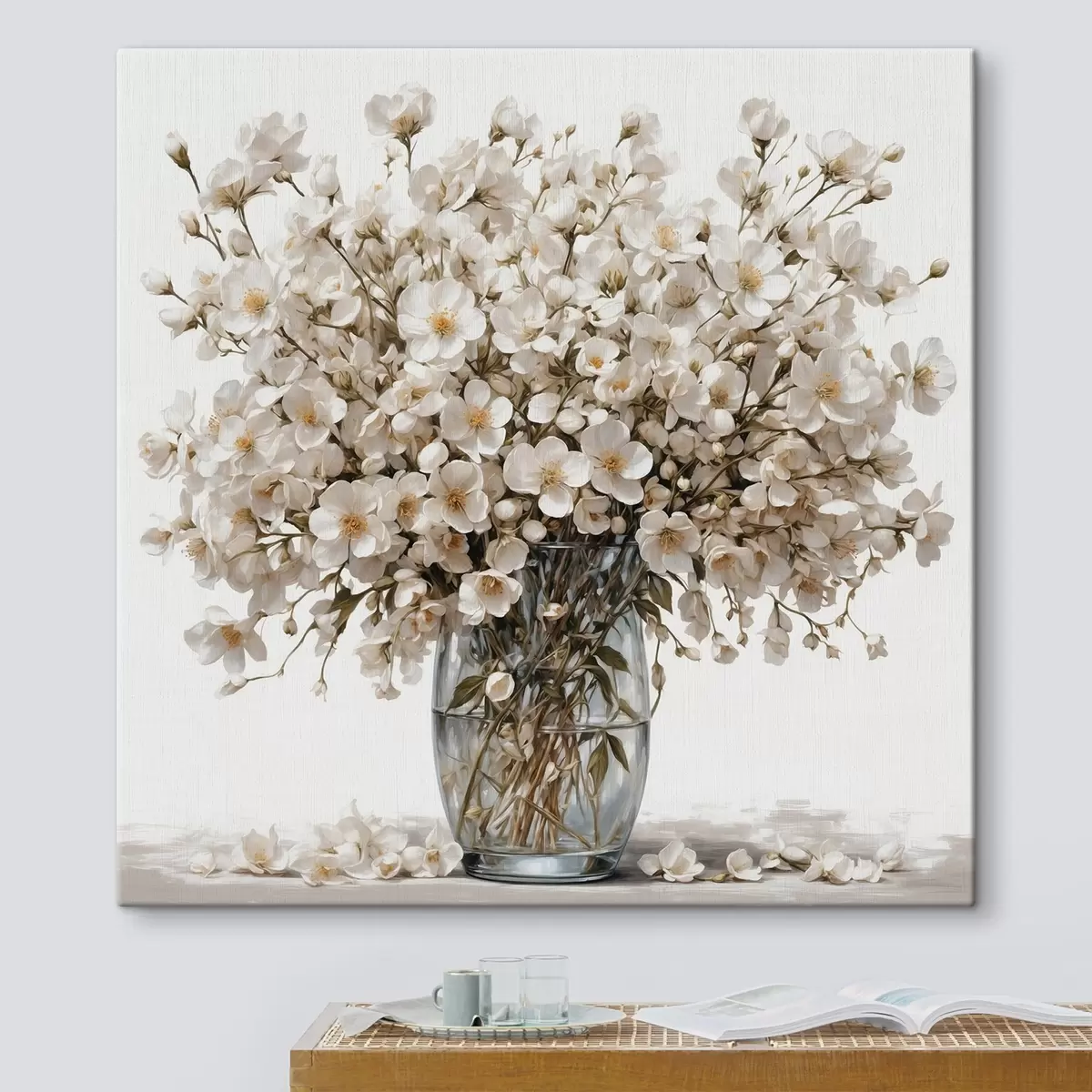 Cuadros Flores blancas en jarrón transparente. Nr s44092