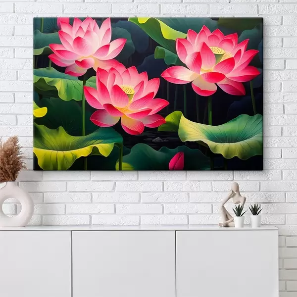 Hay tres tipos de material disponibles para pedidos: Lienzo Económico - material denso y duradero para impresión digital, idéntico al lienzo de pintor, superficie impermeable, reproducción realista de los detalles, material de grano medio. Lienzo Premium - la textura se asemeja a la de un lienzo de pintor (pequeños hilos entrelazados). Reproducción suave y detallada de la imagen sobre una superficie mate. Eco-Premium - tejido 100% algodón de alta calidad. Gracias a las fibras naturales de algodón, el material es duradero y resistente al desgaste. Excelente reproducción del color y el detalle.