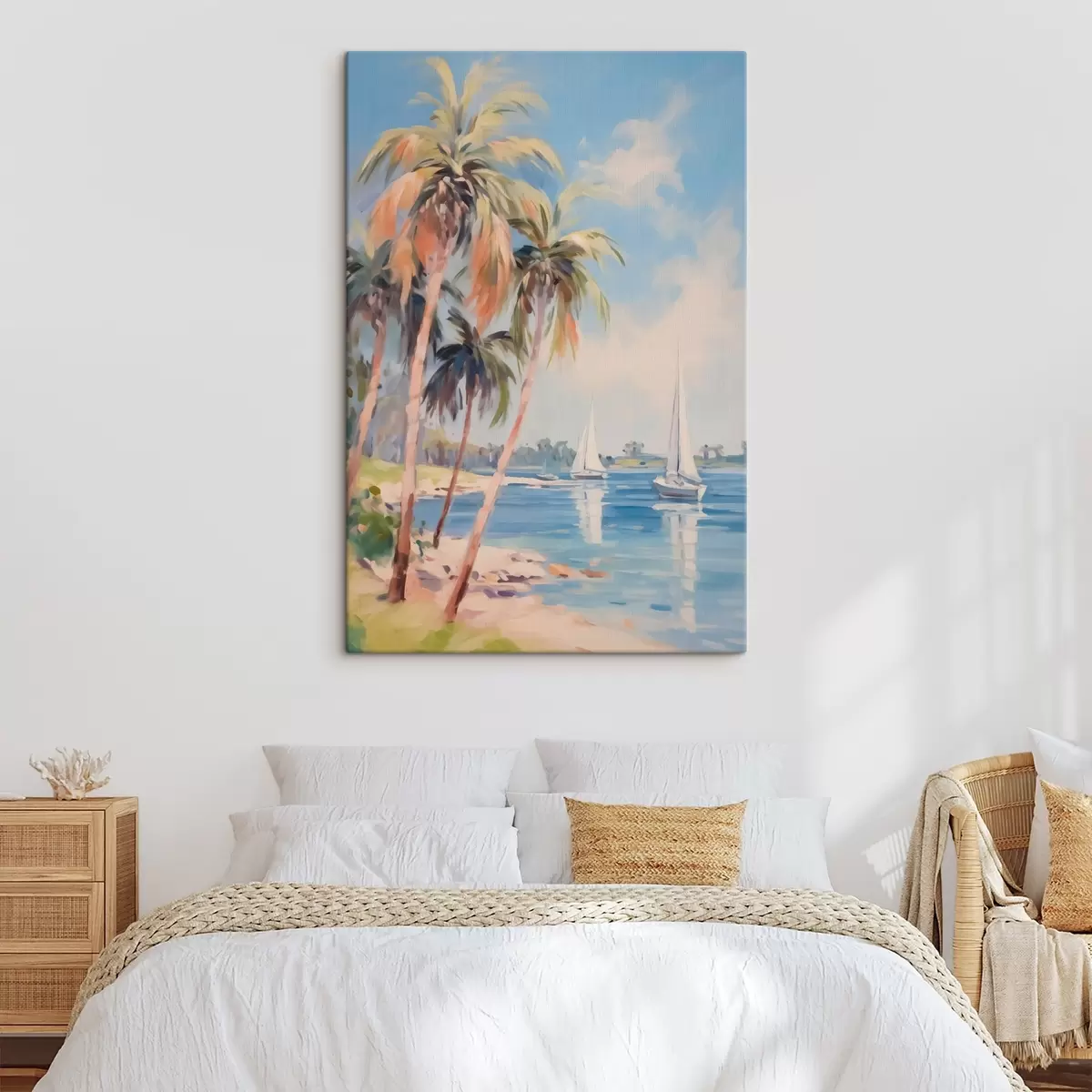 Cuadros Palmeras junto a la bahía imitación de pintura Nr s44122