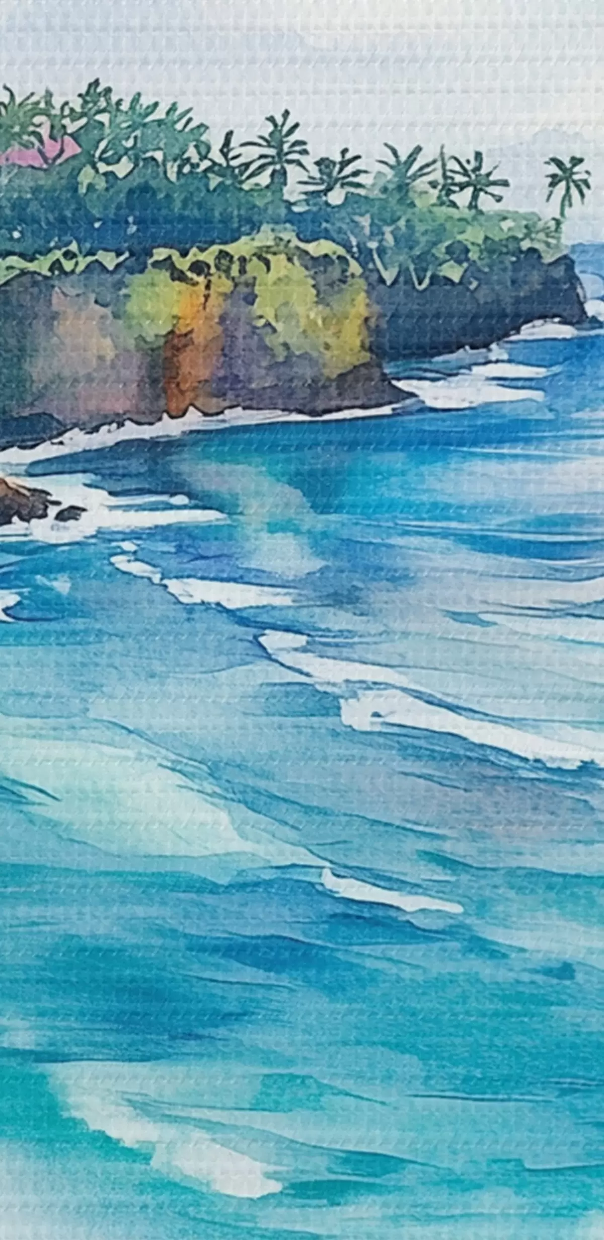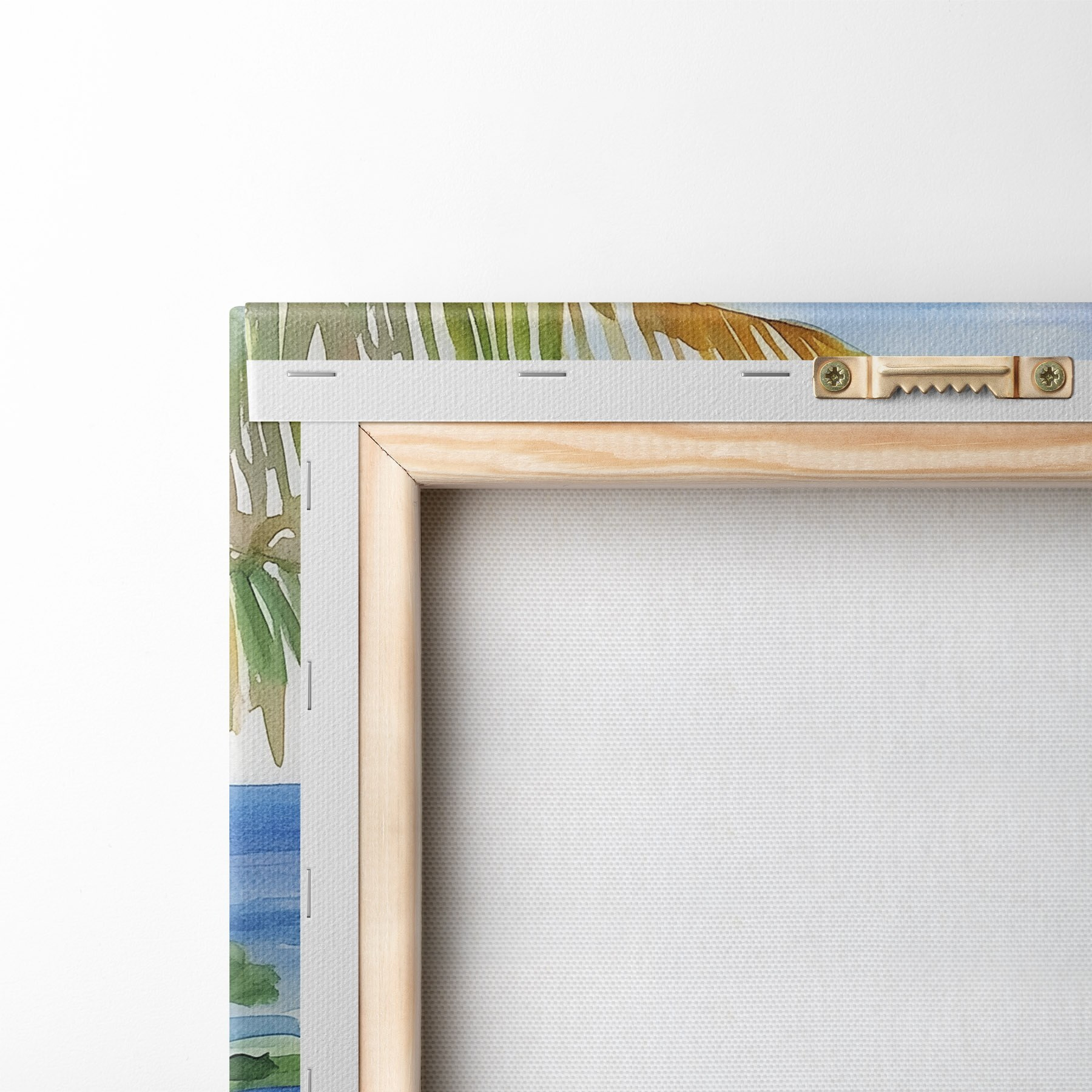 Cuadros Playa tropical, palmeras, flores, estilo acuarela Nr s44145