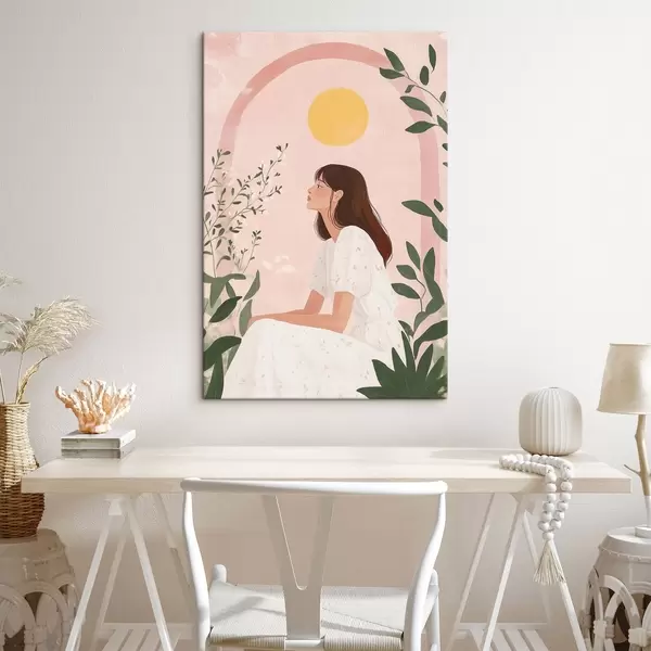 Cuadros Hermosa mujer en el jardín tropical, sol, colores pastel Nr s44155