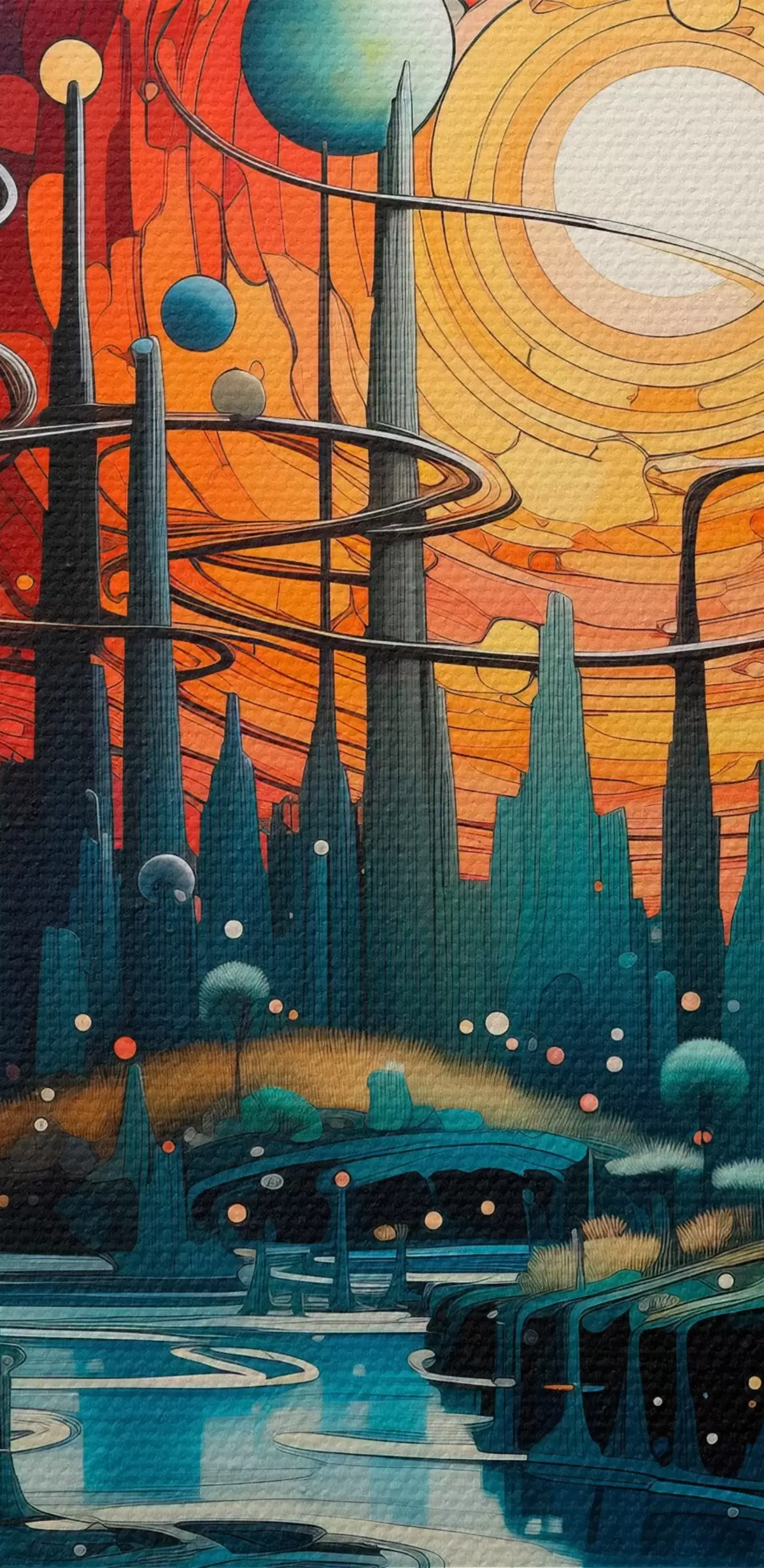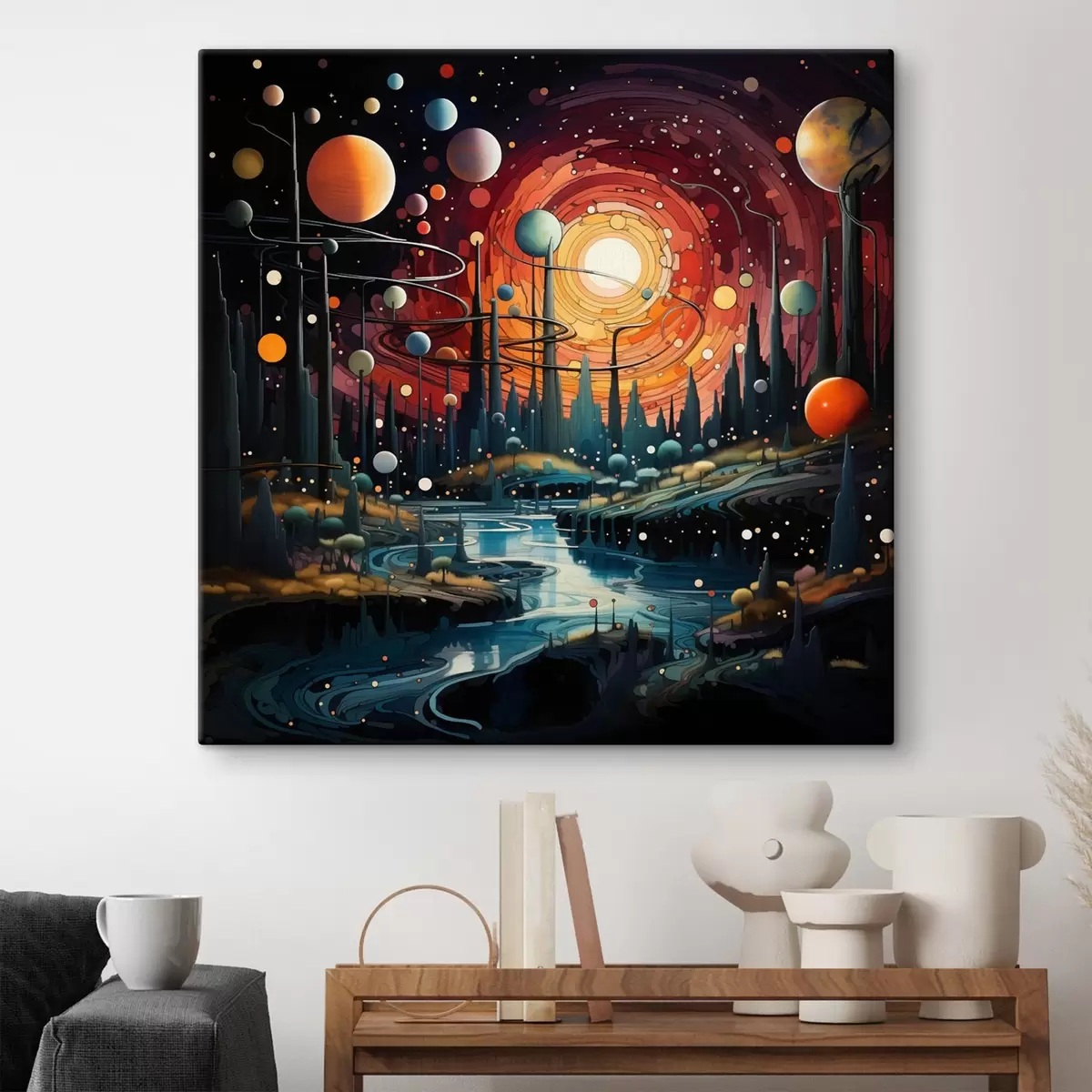 Cuadros Brillante y fantástico paisaje de un mundo alienígena con planetas y un río Nr s44249