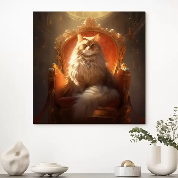Cuadros Regio gato con ojos de ámbar en un trono en los rayos de la gloria en el estilo barroco Nr s44250