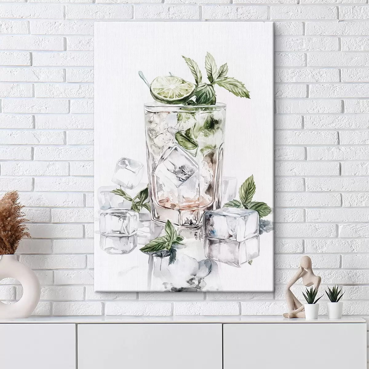 Cuadros Cóctel mojito, bebidas estilo acuarela, menta Nr s44302