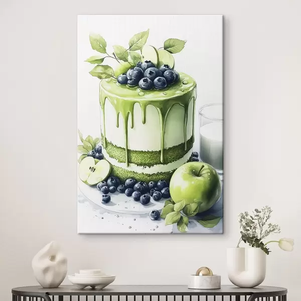 Cuadros Tarta de matcha con arándanos y manzanas, estilo acuarela Nr s44304