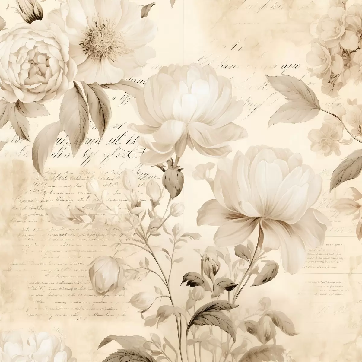 murales de pared Composición vintage de flores blancas cremosas s44332