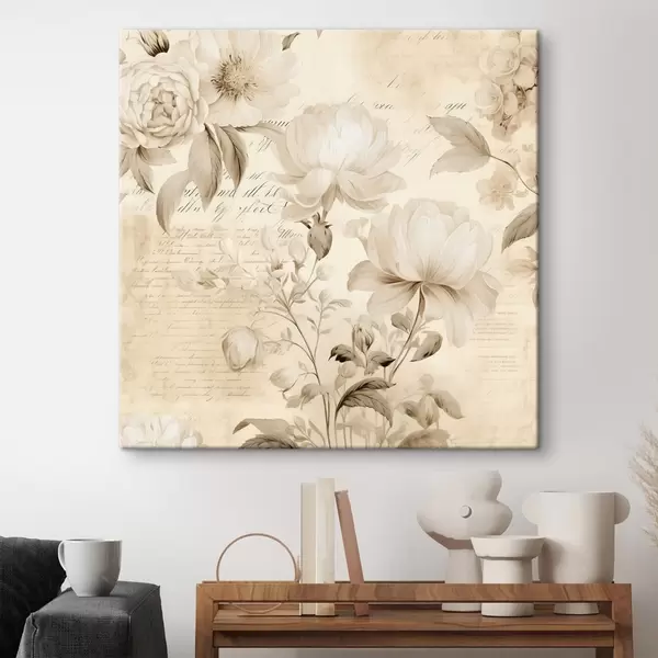Cuadros Composición vintage de flores blancas cremosas Nr s44332