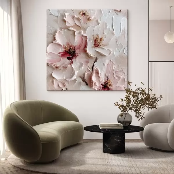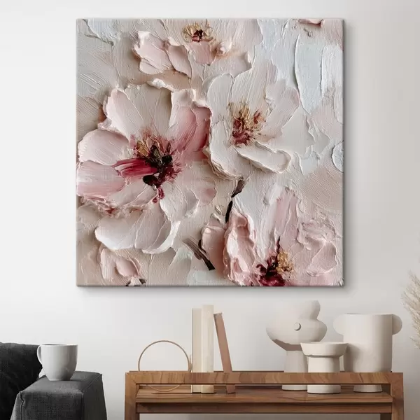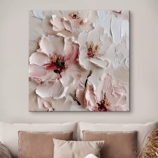 Cuadros Flores con imitación al impasto en trazos rosas y blancos Nr s44333