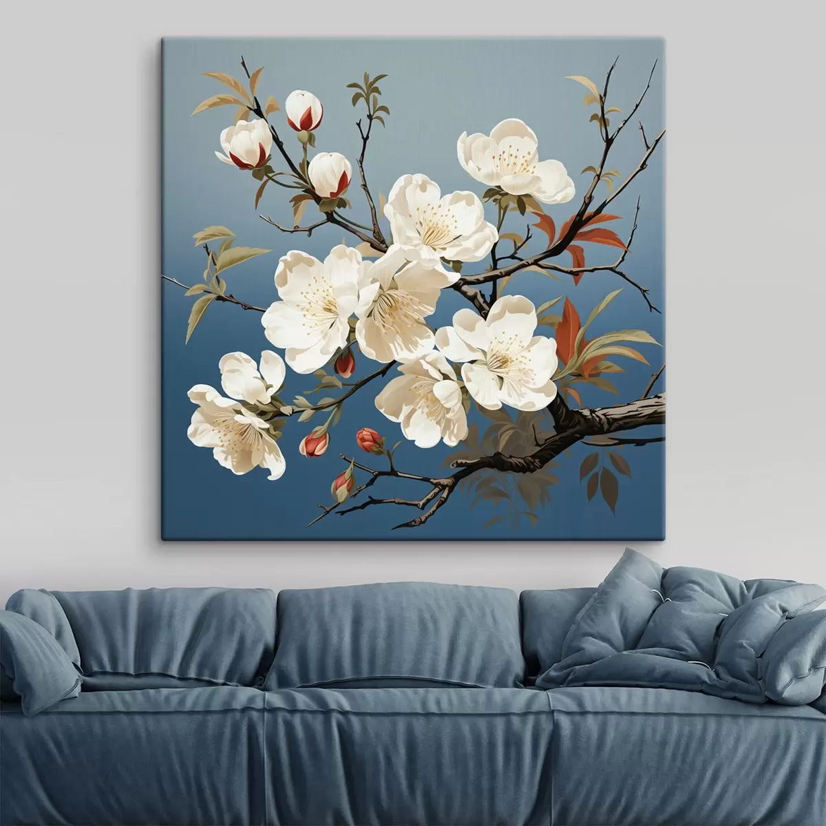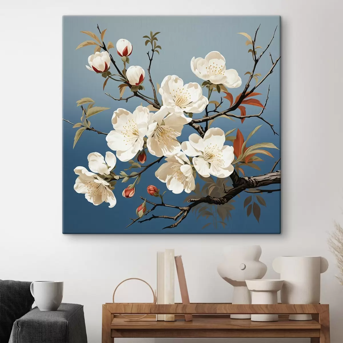 Cuadros Rama de magnolia con capullos rojizos sobre fondo azul Nr s44341