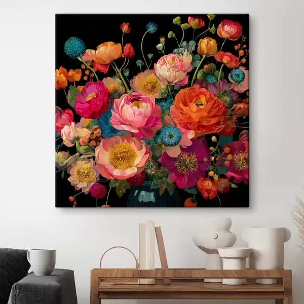 Cuadros Extravagancia floral sobre fondo negro Nr s44352
