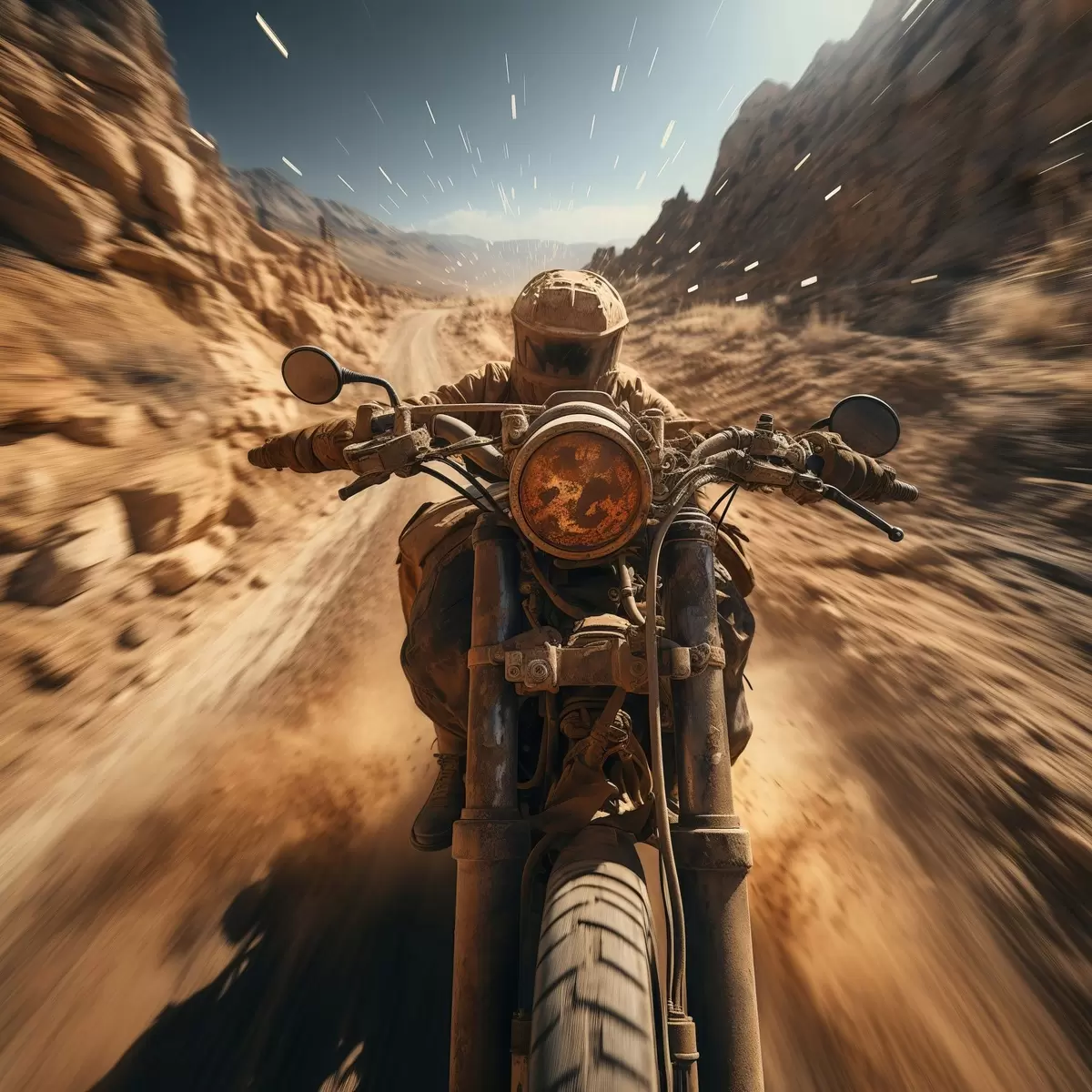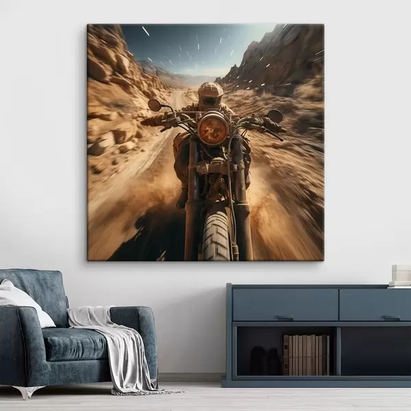 Cuadros Motociclista circulando a toda velocidad por una carretera desierta Nr s44361