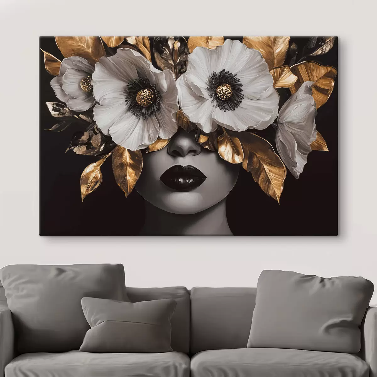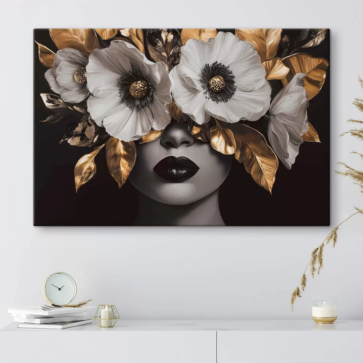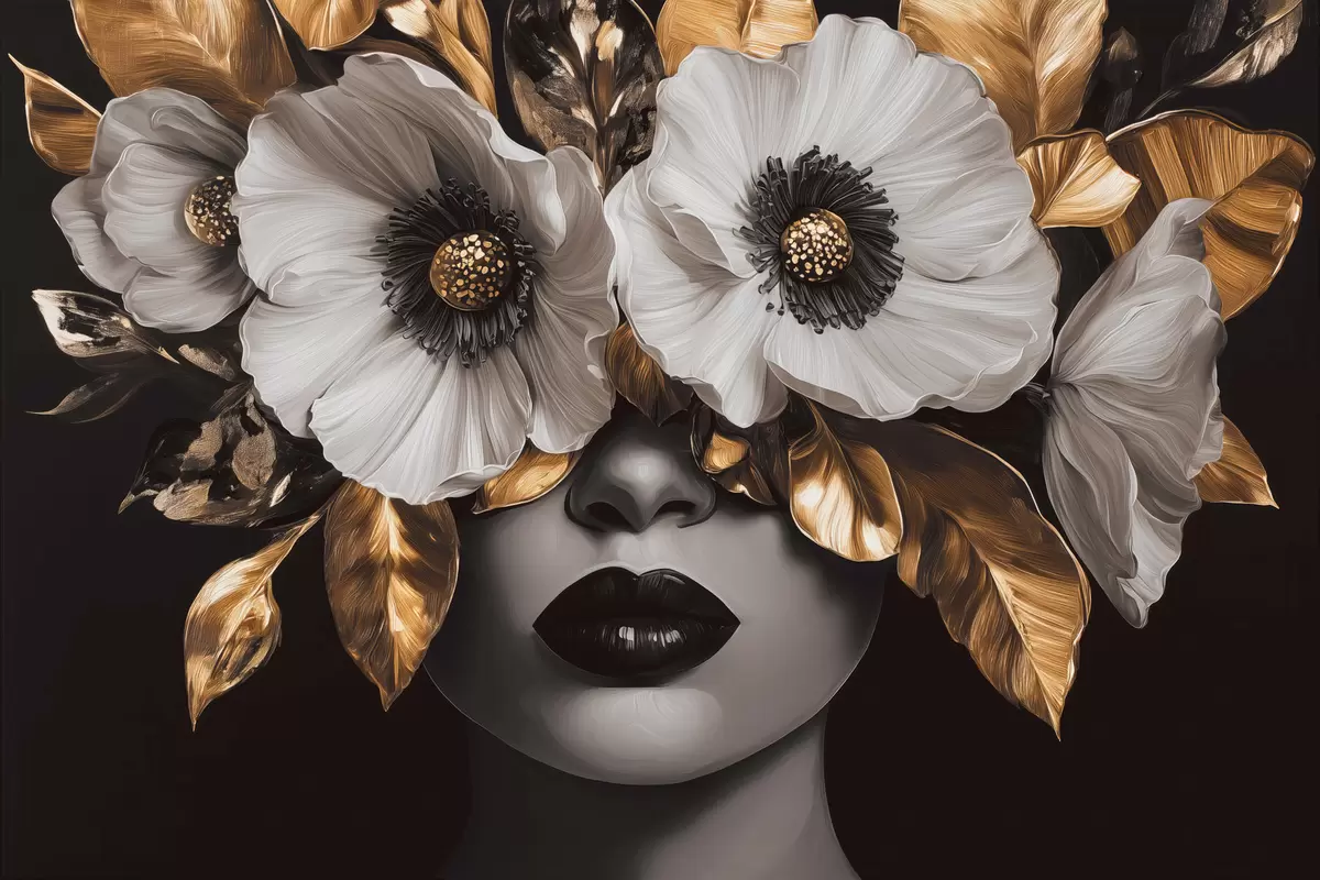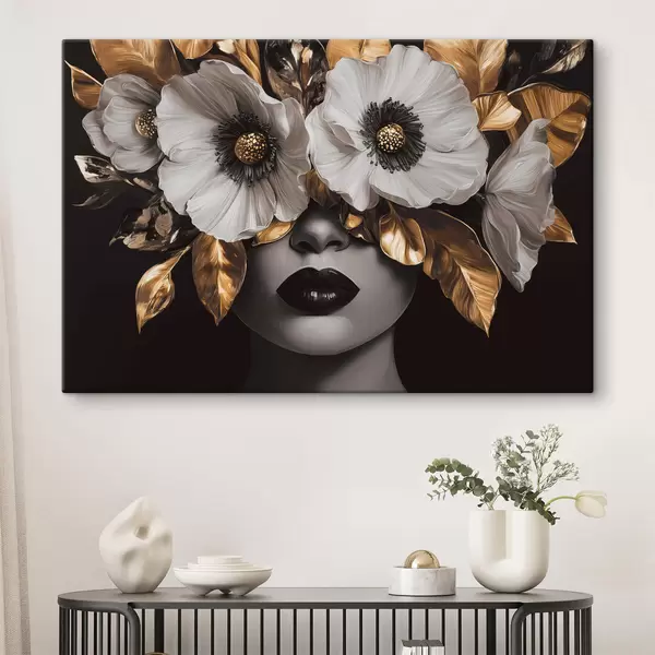 Cuadros Retrato semiabstracto de una mujer con flores Nr s44365