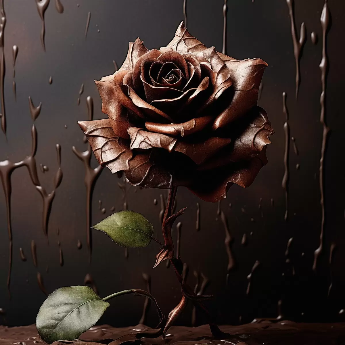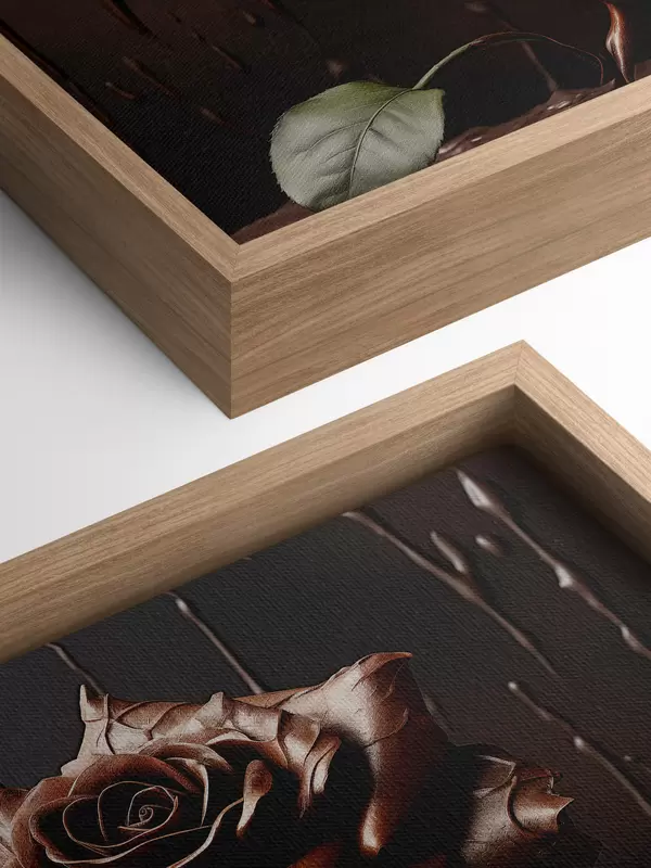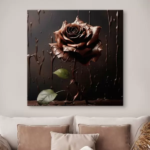 Cuadros Rosa marrón sobre fondo oscuro con salpicaduras de chocolate Nr s44381