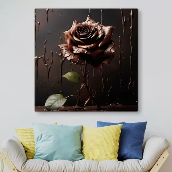 Cuadros Rosa marrón sobre fondo oscuro con salpicaduras de chocolate Nr s44381