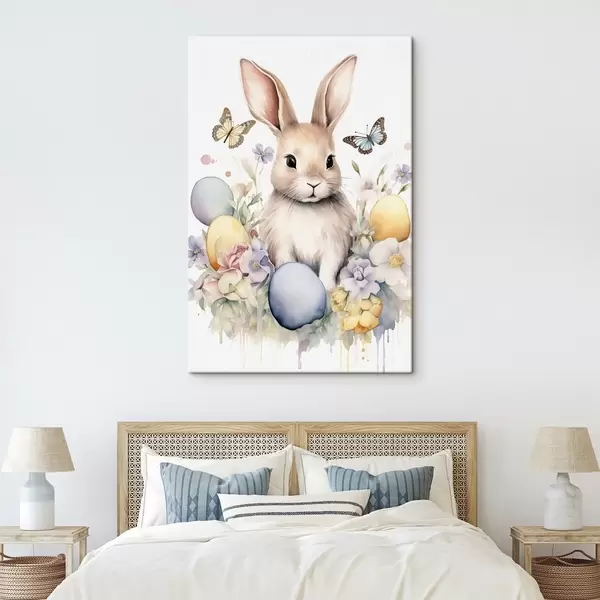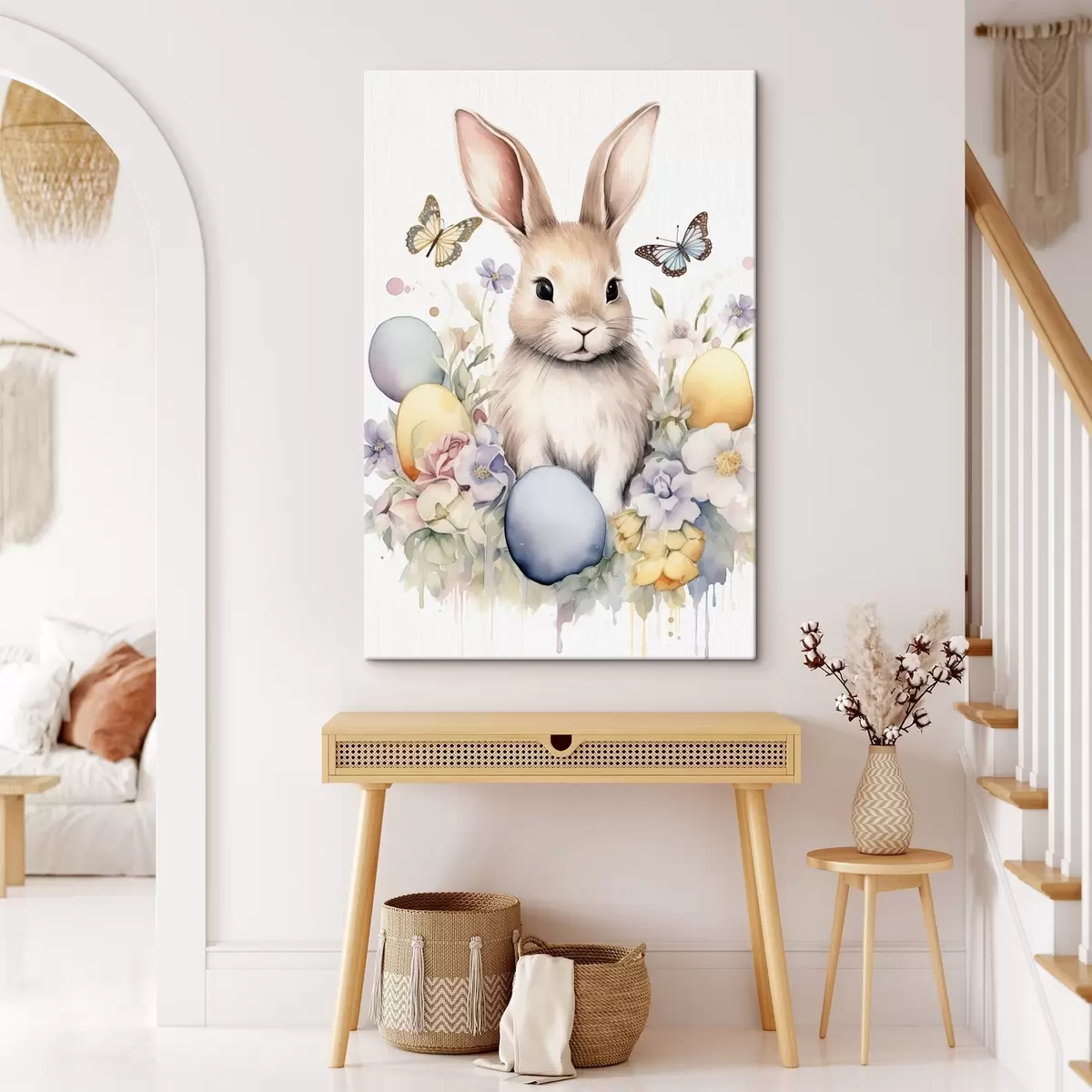 Cuadros Lindo conejito en estilo acuarela en flores con mariposas Nr s44388