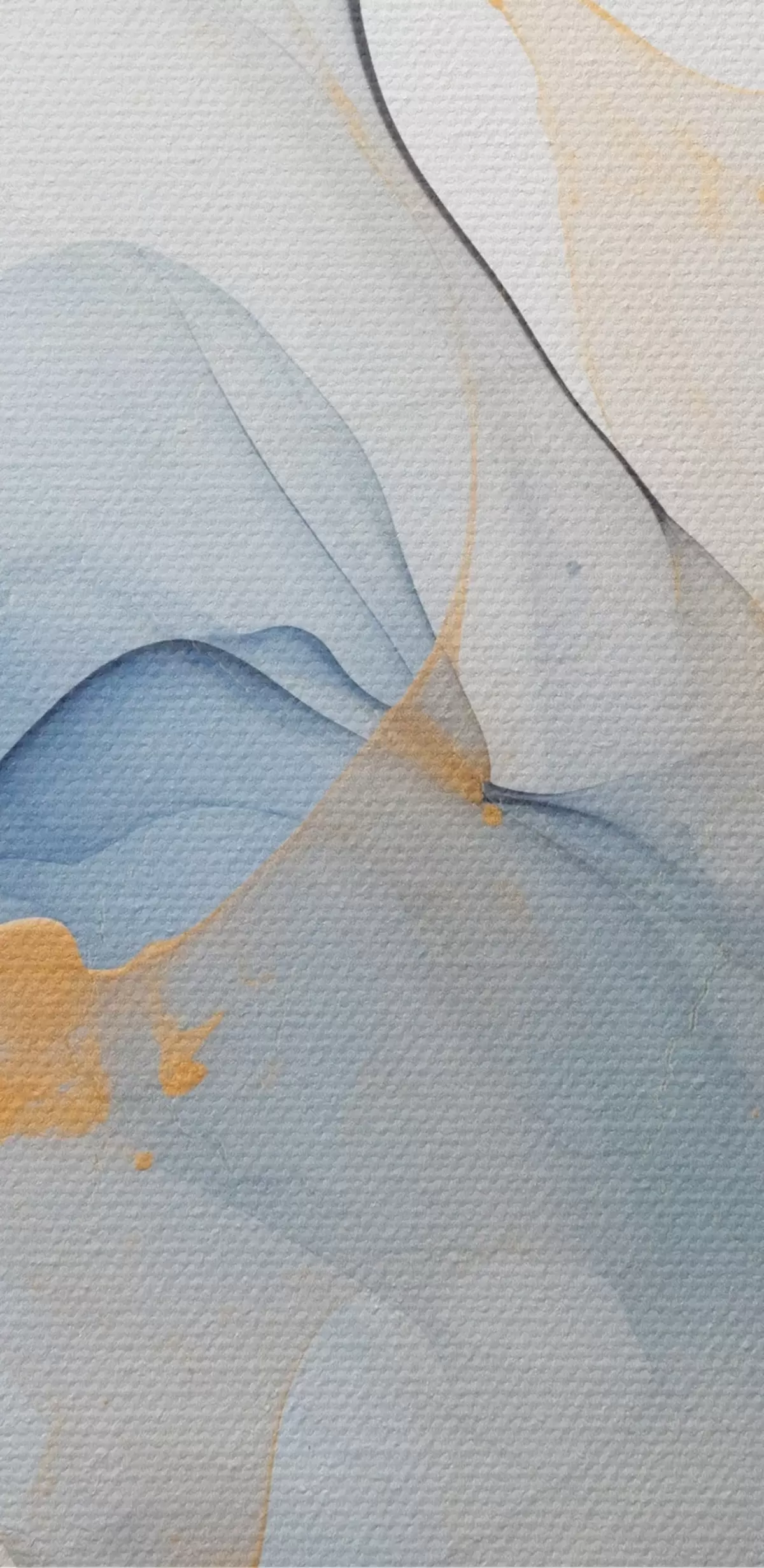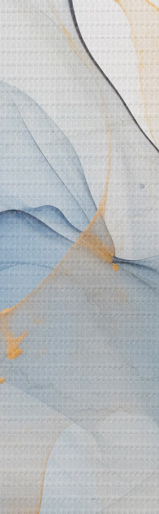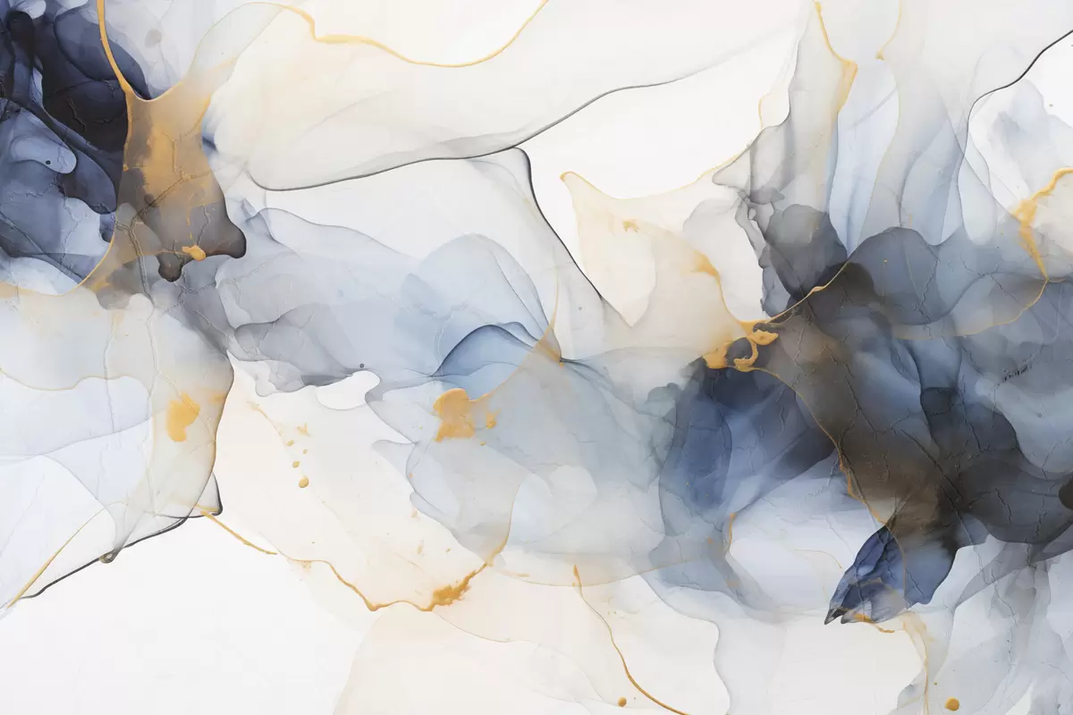 murales de pared Pintura abstracta con tinta azul, formas fluidas y orgánicas, texturas delicadas sobre fondo blanco s44397