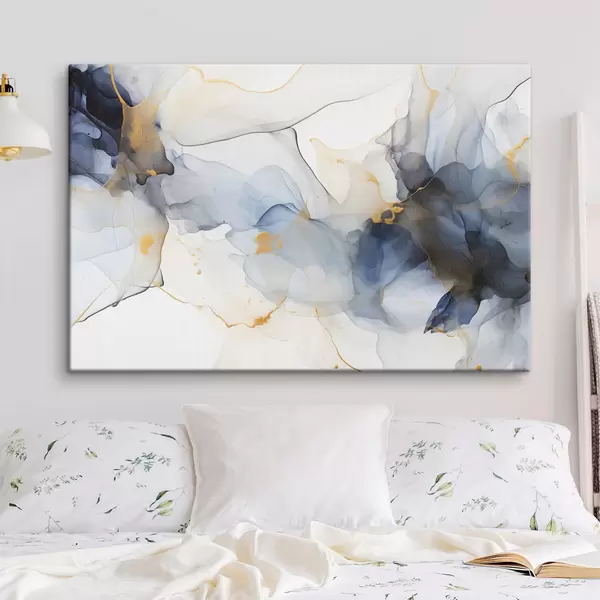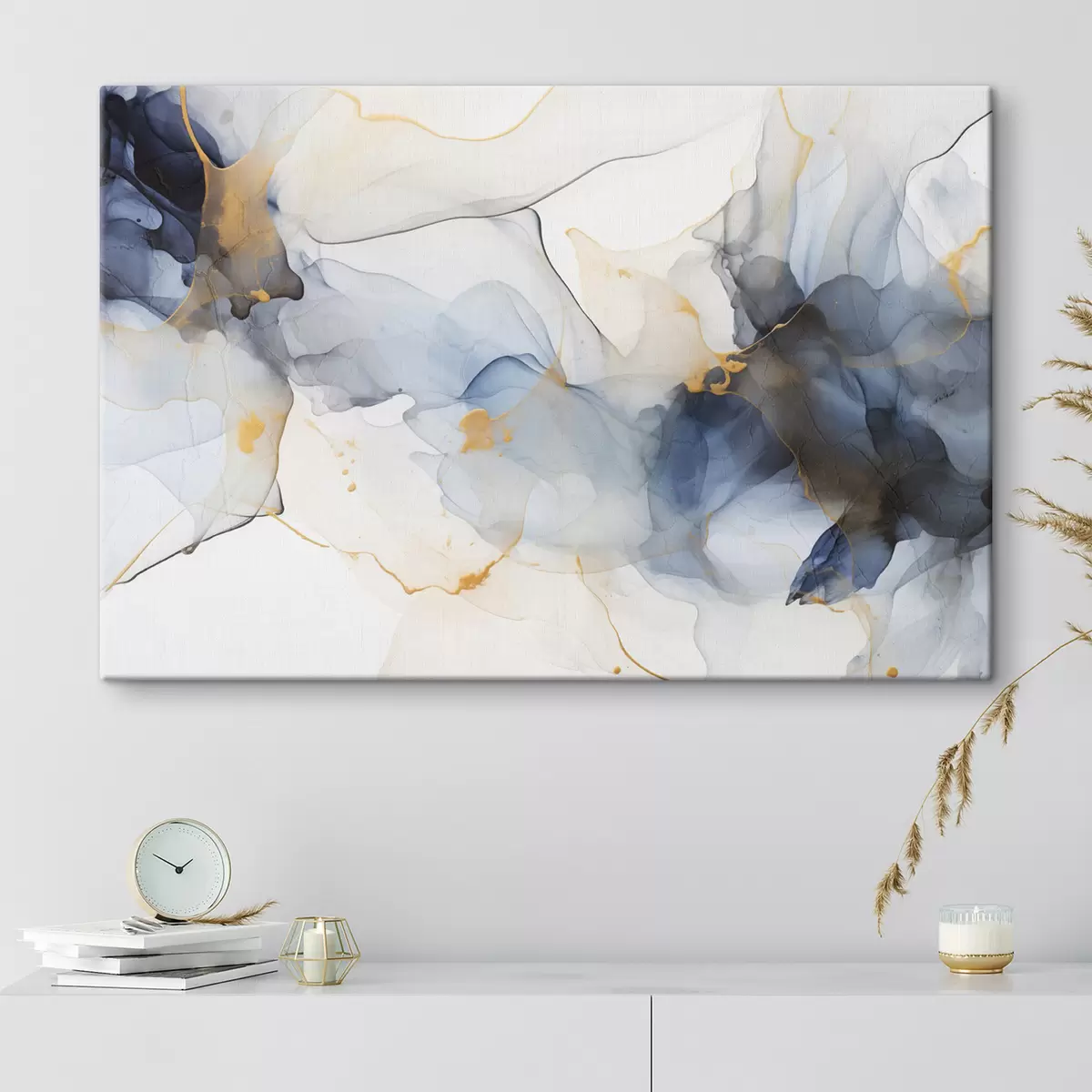 Cuadros Pintura abstracta con tinta azul, formas fluidas y orgánicas, texturas delicadas sobre fondo blanco Nr s44397