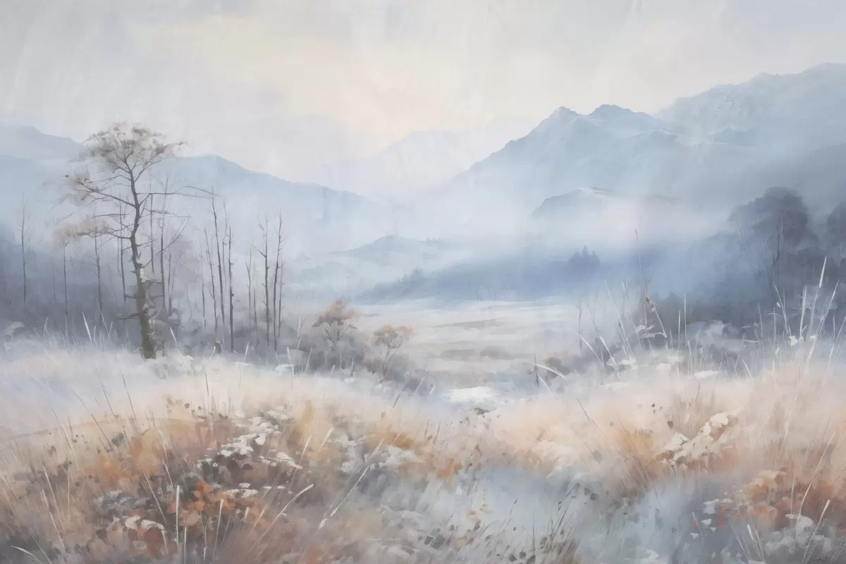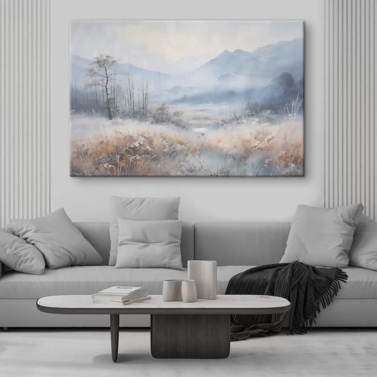 Cuadros Paisaje texturizado con montañas, hierba seca y un bosque, colores apagados Nr s44402