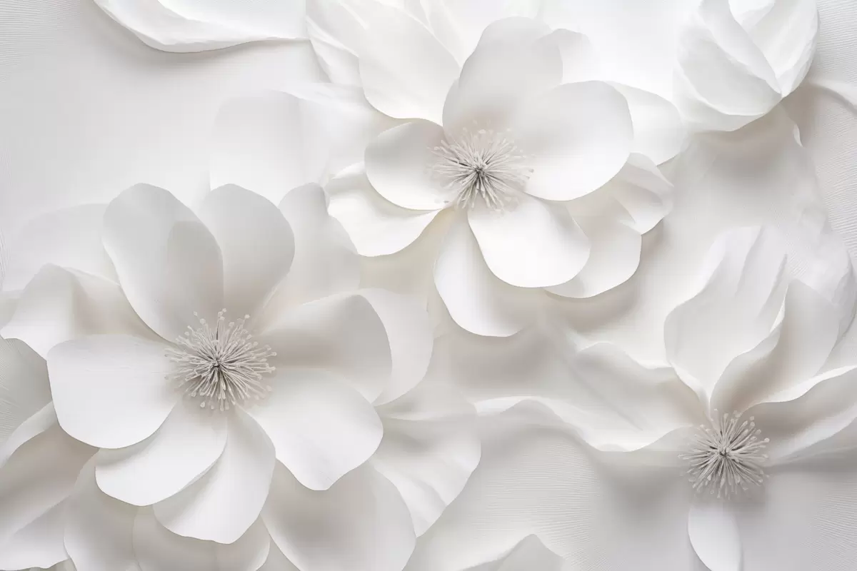 murales de pared Flores decorativas blancas con pétalos delicados y estambres intrincados  s44406