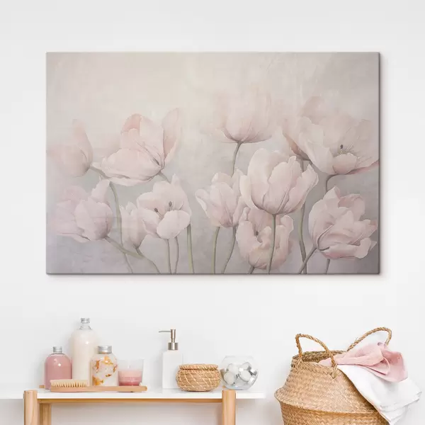 Cuadros Tulipanes rosas con textura vintage y tallos largos, colores suaves y apagados, fondo gris claro Nr s44407