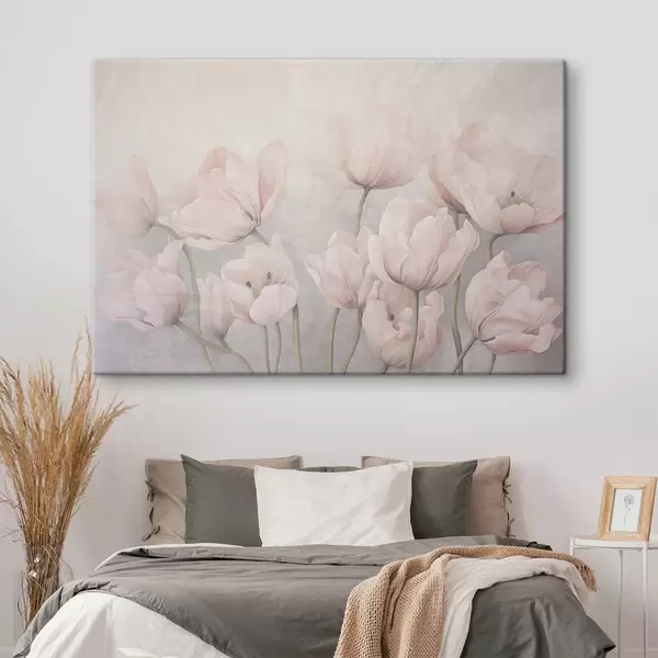 Cuadros Tulipanes rosas con textura vintage y tallos largos, colores suaves y apagados, fondo gris claro Nr s44407