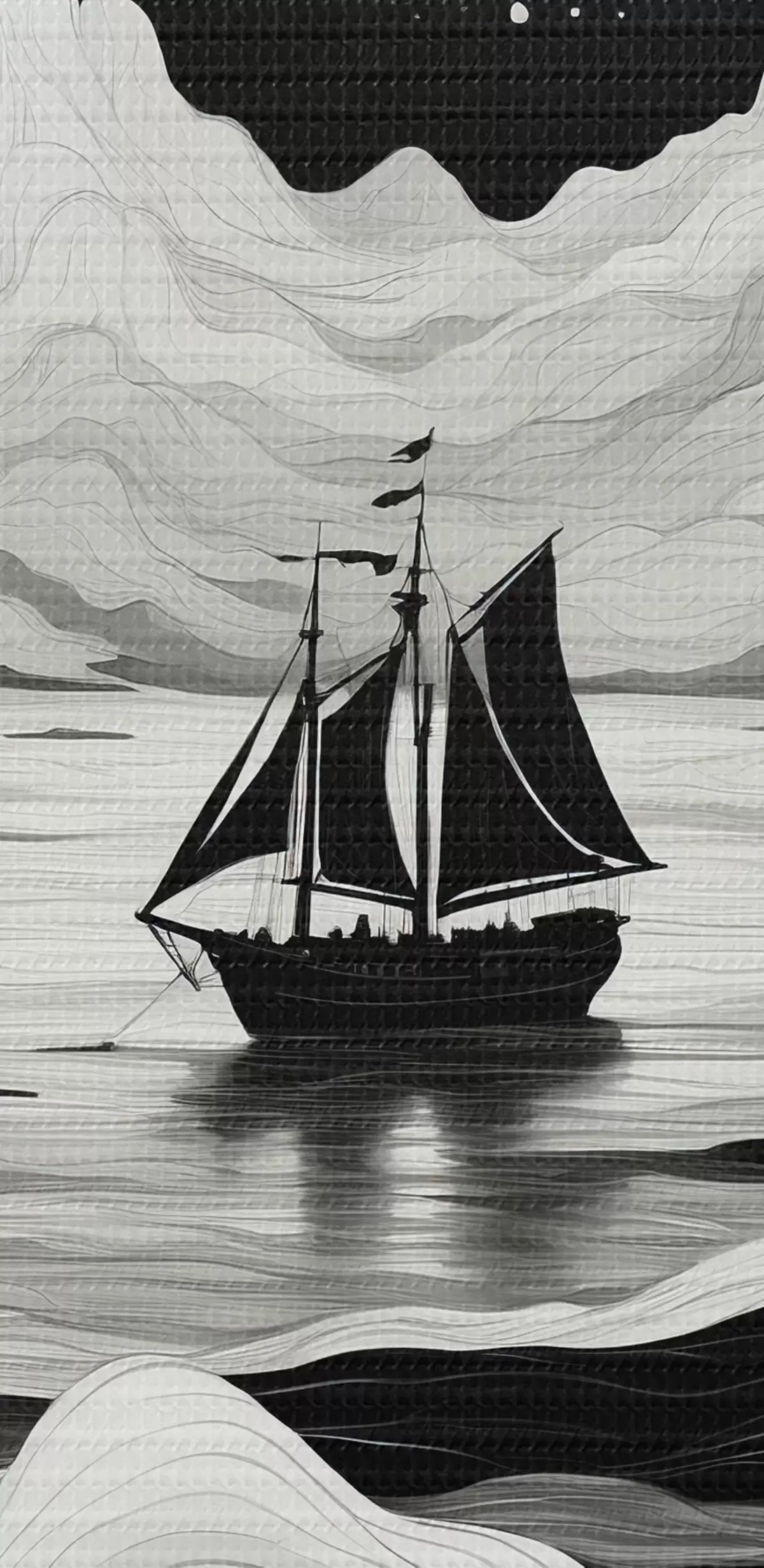 murales de pared Barco en el mar de noche brumosa s44437