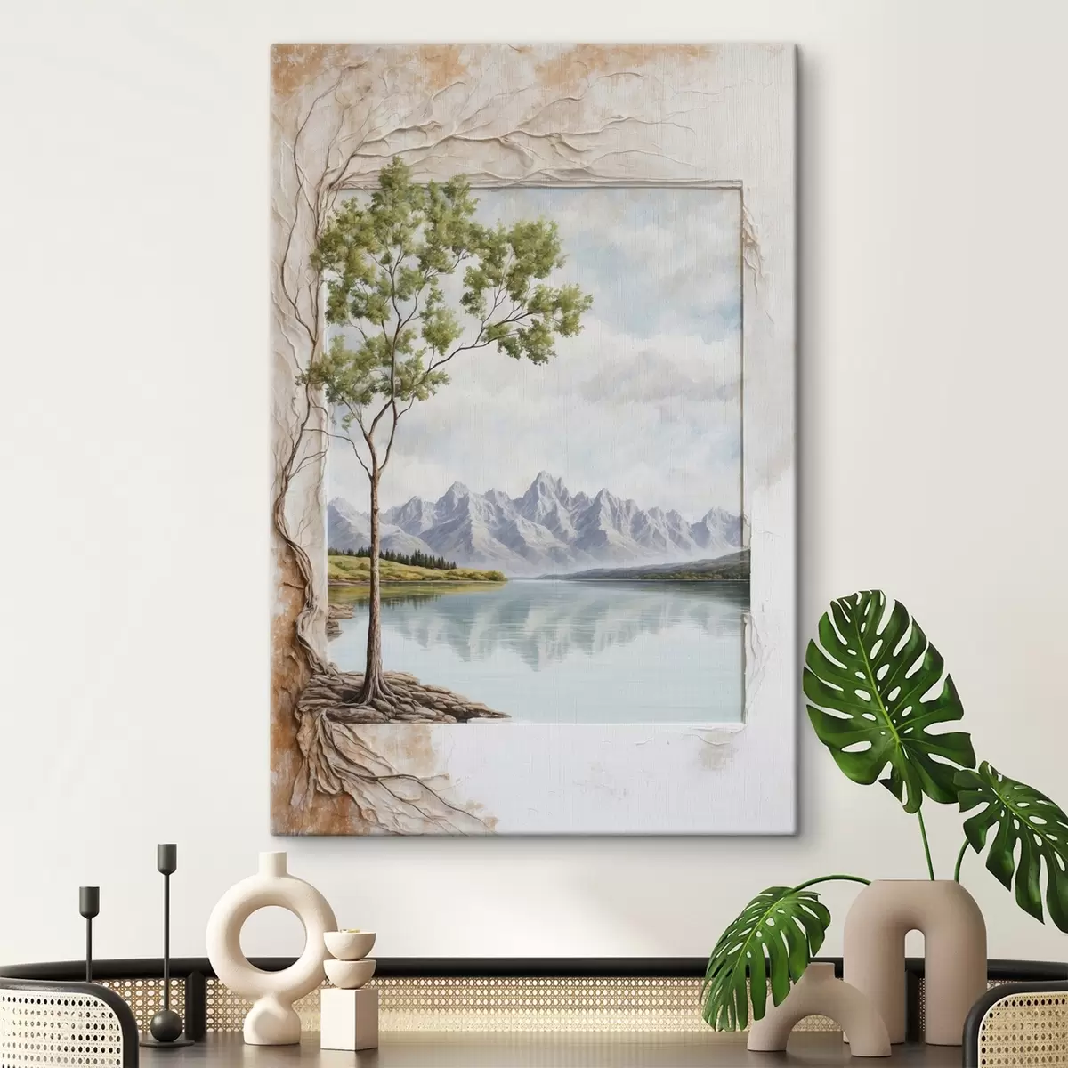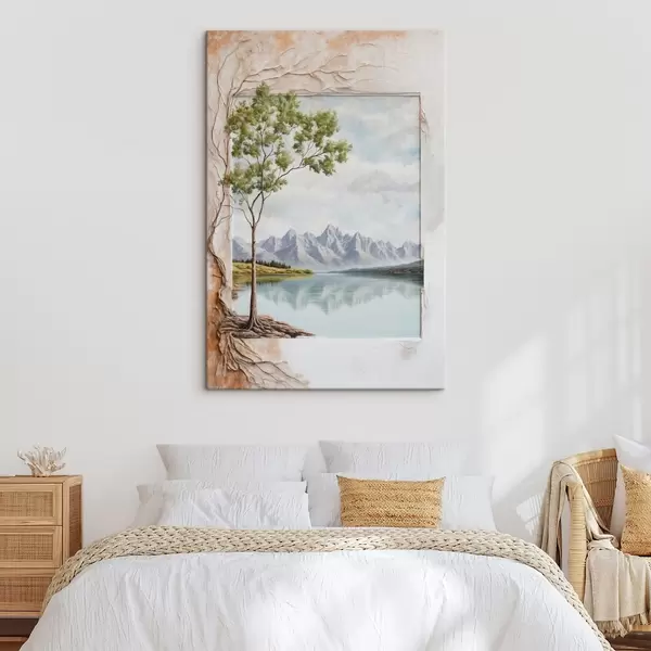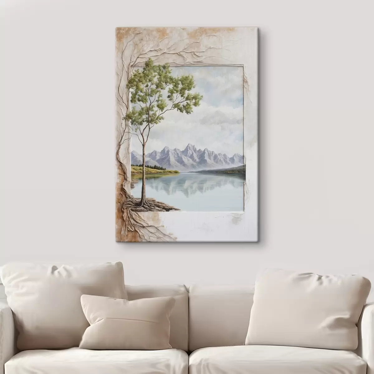 Cuadros Vista sobre el lago y montañas nevadas en el encuadre Nr s44458